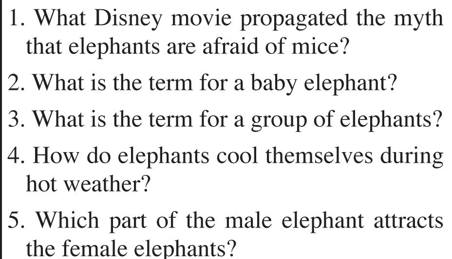 • Oddly enough, the ears of African elephants are shaped much like the content of Africa, while the Asian elephant’s ears are shaped like the
