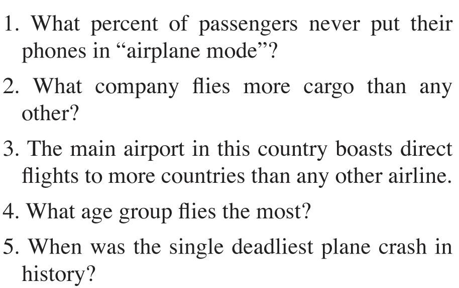 • Between 2015 and 2020, the percentage of commercial flights completed without injuries or fatalities was 99.999%. When you board a plane,