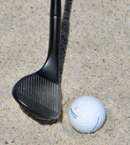 But many times you’ll find your ball in a poor lie which should call you to make the one most critical adjustment: square the clubface at address! By simply squaring the clubhead, you’re creating a digging instrument that can excavate enough sand under and with the ball to send it out of the bunker. An open face from poor lies leads to a reflecting clubhead off the sand or simply puts the leading edge into the equator of the ball.