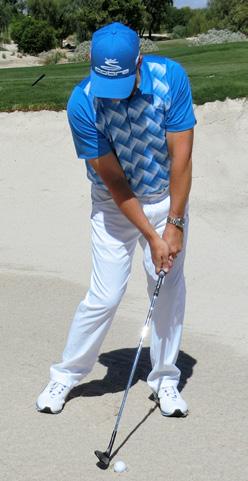 After you’ve squared the clubface, lean the bodyweight and the clubshaft toward the target slightly so that you can achieve a sharper strike into the sand. Try hitting closer to the ball with your new