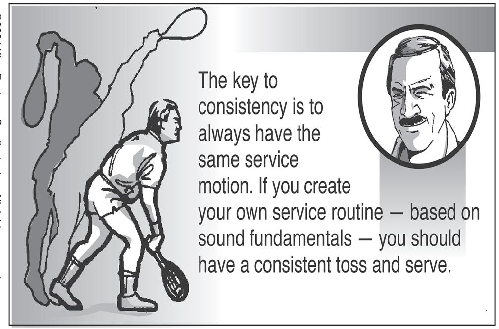 3. At least one arm is extended for swing width. Simply stated, the left arm is long in the backswing, and the right arm is long in the follow through (vice versa for left handers). Width creates and sustains power.