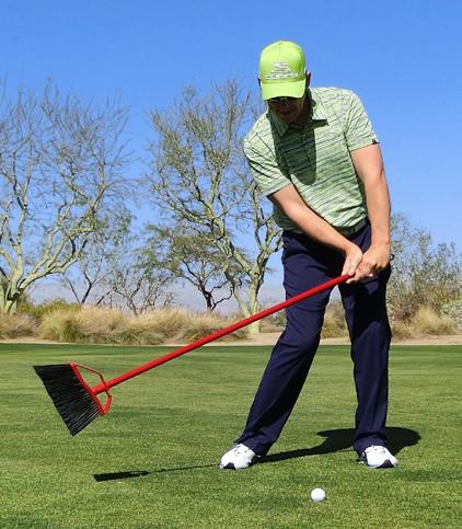 One of the best images in the downswing is creating a swinging of the handle like one would swing a broomstick forward. In order to overcome the weight of broomstick, your arm swing and weight shift would initiate the forward movement. You would be “swinging the handle” rather than trying to control the broom head.