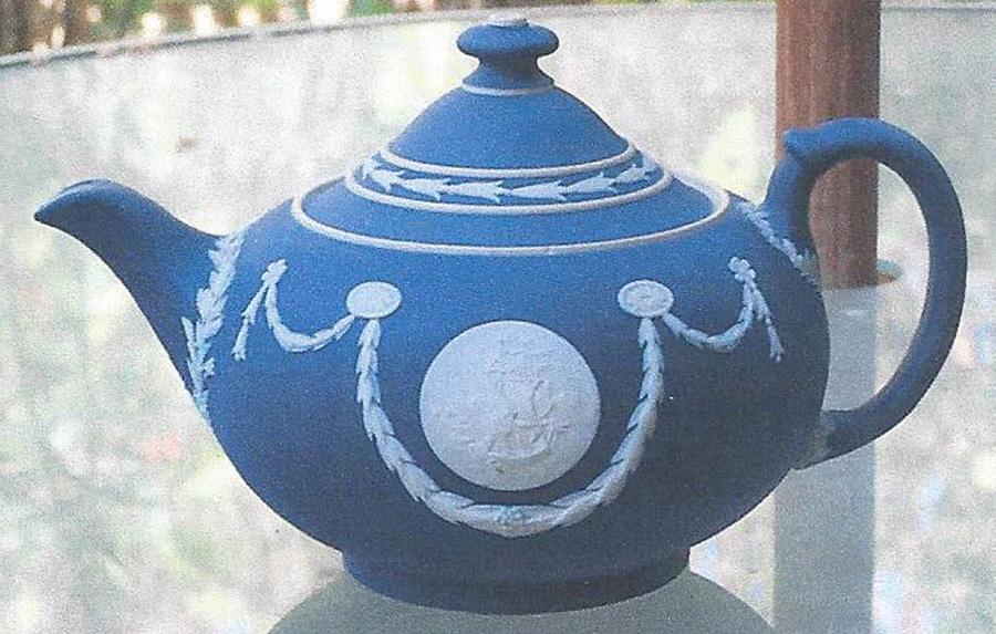 A: You have a dark blue jasperware teapot that was made by Wedgwood. Josiah Wedgwood founded his pottery in England in 1759.
