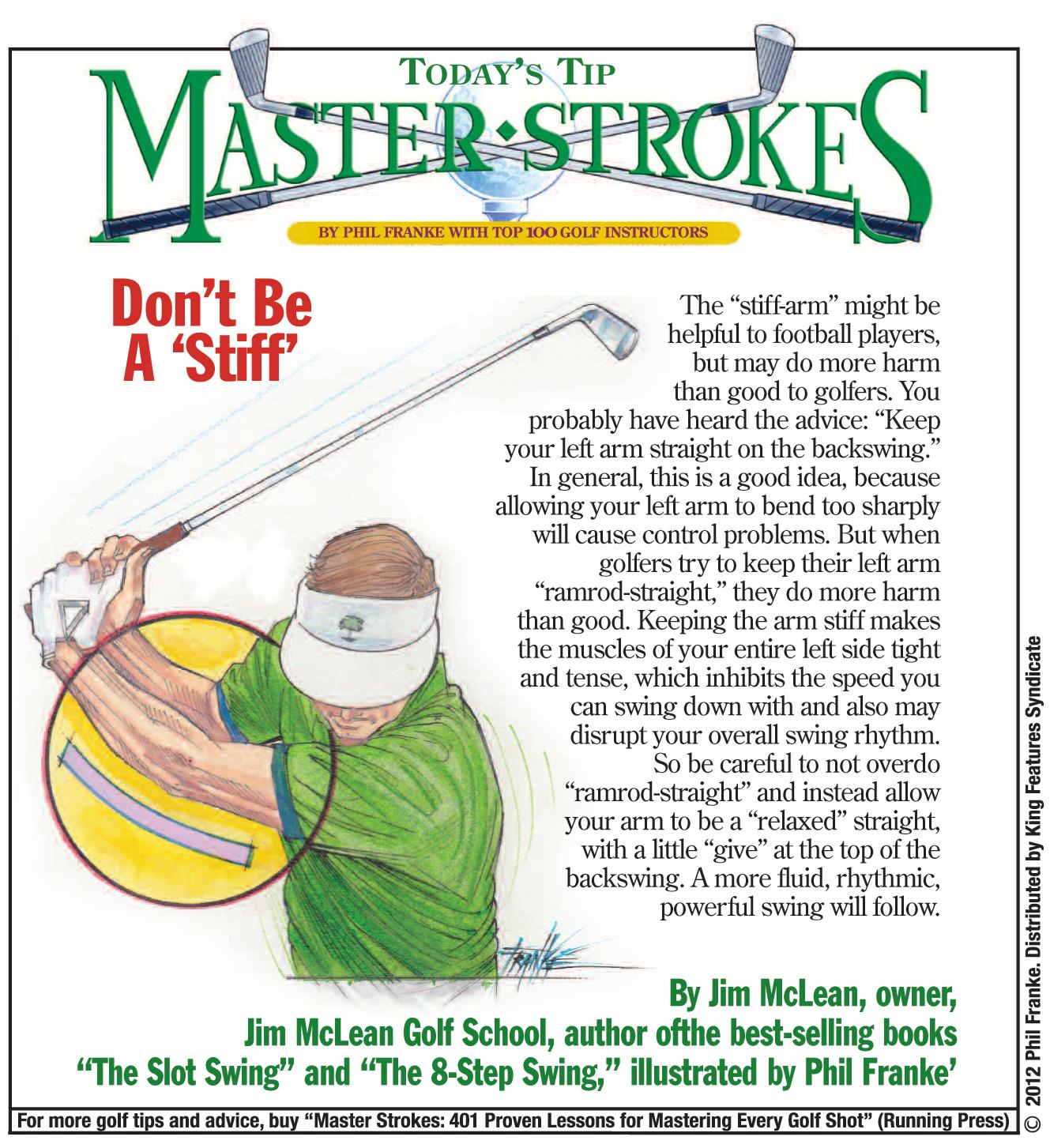 Better players have built two main processes into their short putting mechanics. One is keeping the eyes and head facing the ground for that second past impact. The other is locking the hips in place so they won’t turn toward the target in the follow through.