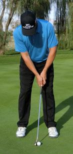 In order to get the best immediate roll on your putts, practice hitting putts with two coins stacked behind the ball. Don’t let the putter strike the coins. Secondly, try leaning the putter
