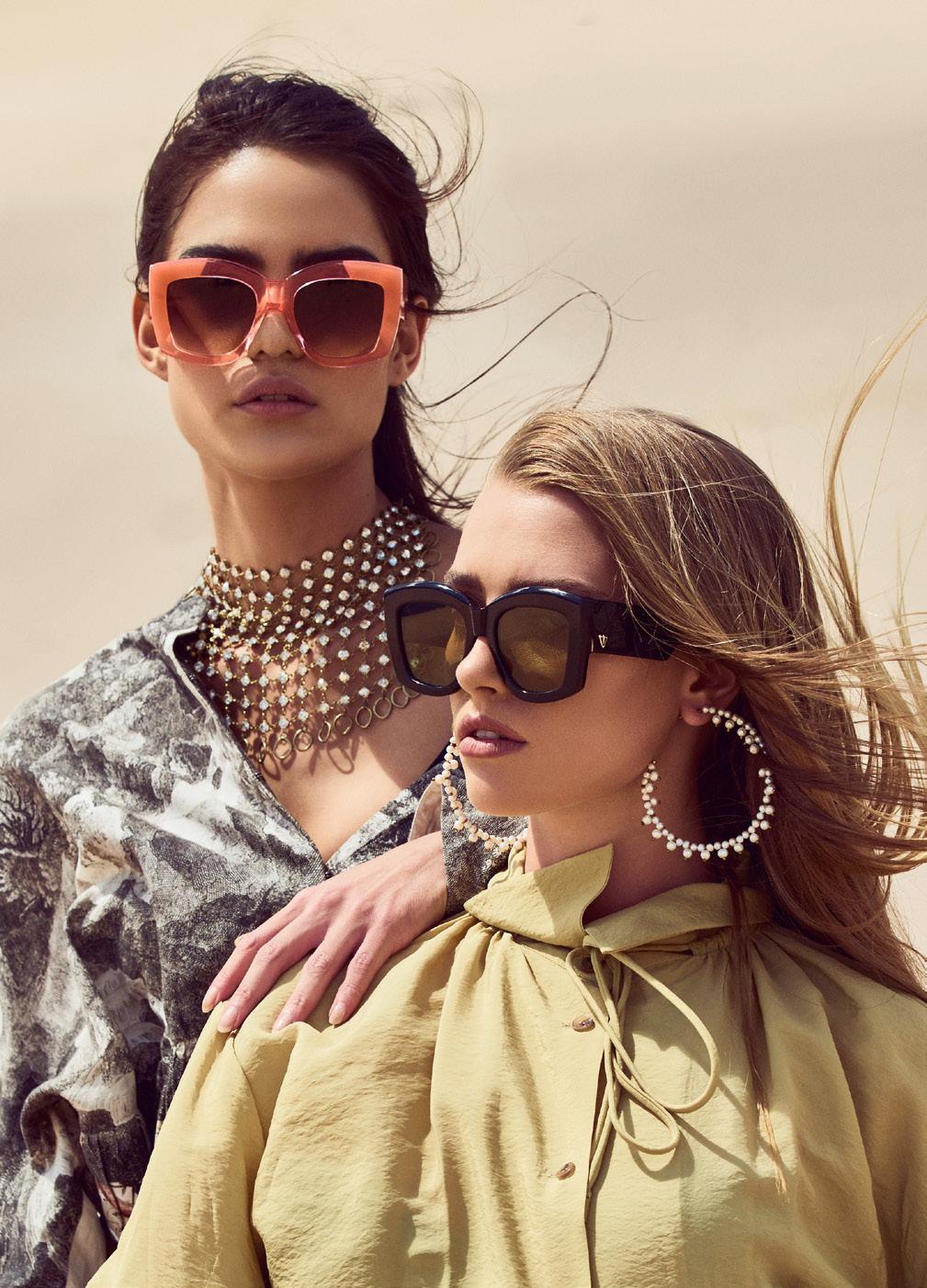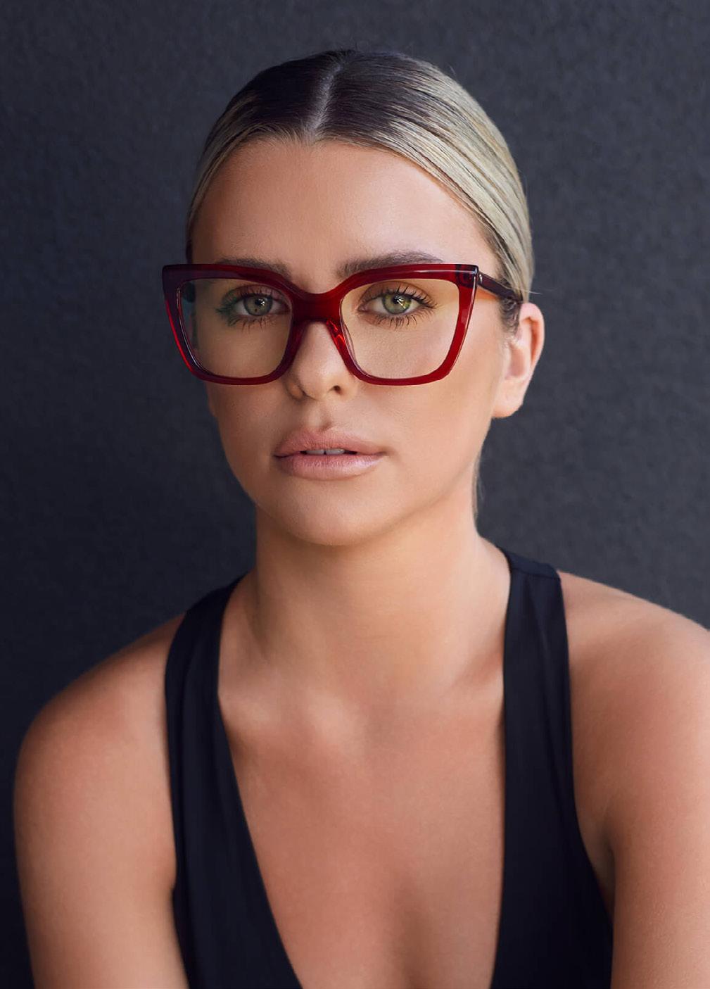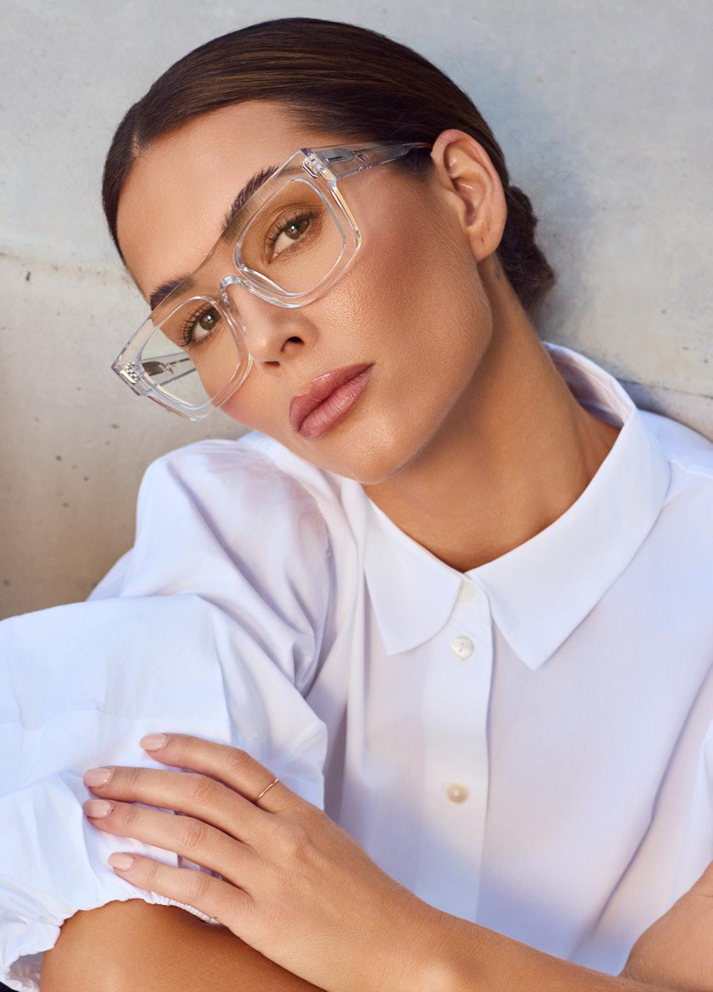 This fashion forward yet versatile style has quickly become one of our iconic shapes and is now available in our zero base (flat) face curve and zero base lenses. Our attention to detail and craftsmanship is heroed through the bevelled arm detail, premium Japanese acetate and metal cross inserts that have been inset with 14 Swarovski Crystals.