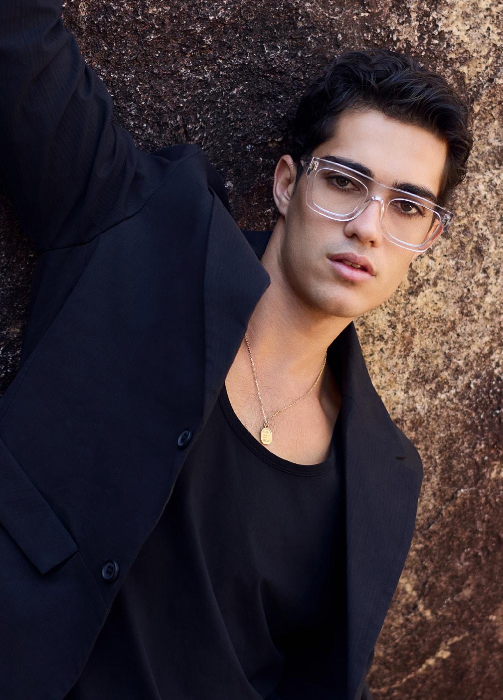 A bold, unisex frame boasting a rectangular silhouette and a 7mm thick front face. Featuring metal details and a transparent inner temple, the Alta is an approachable and wearable take on a statement frame.