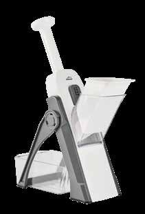 MANDOLINA CON CONTENEDOR MASTER CUT PRO Cuchilla lisa de acero inox con corte en “V”. 2 cuchillas extra. Grosor de corte horizontal: 5 posiciones. Libre de BPA. Cumple normativa LFGB. Empujador / protector de manos. Apto para lavavajillas.