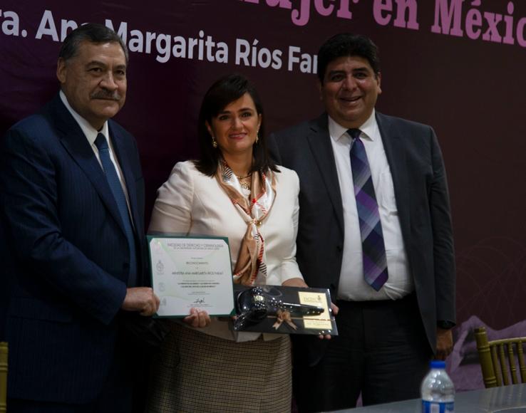 En el marco de la conmemoración por el 68 aniversario del voto de la mujer en México, la Dra. Ana Margarita Ríos Farjat, ministra de la Suprema Corte de Justicia de la Nación, impartió una conferencia magistral en la Facultad de Criminología y Derecho sobre la conquista del voto femenino y la implementación de la perspectiva de género en la impartición de justicia.