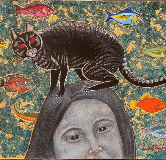 Al salir la niña al pasear por el campo que rodeaba su casa, lo hacía con el gato sobre su cabeza. Esto llamaba mucho la atención entre todos los vecinos. Como les dije en un principio de este cuento, sus padres tenían una pecera con una buena cantidad y variedad de pececillos de colores y como prismas de cristal refractaban todos los tonos del arcoíris ante cualquier tenue luz. En la casa todos se sentían orgullosos de estos bellos pececillos. Y procuraban evitar que Rojo se acercara a ellos que podía hacerles daño.
