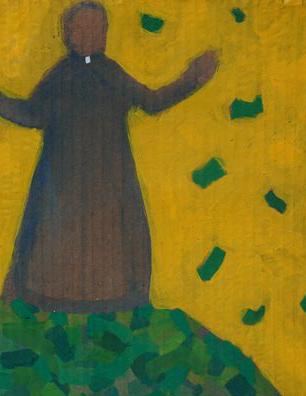 En tus manos encomiendo mi alma (In gold we trust) Acrílico sobre cartón