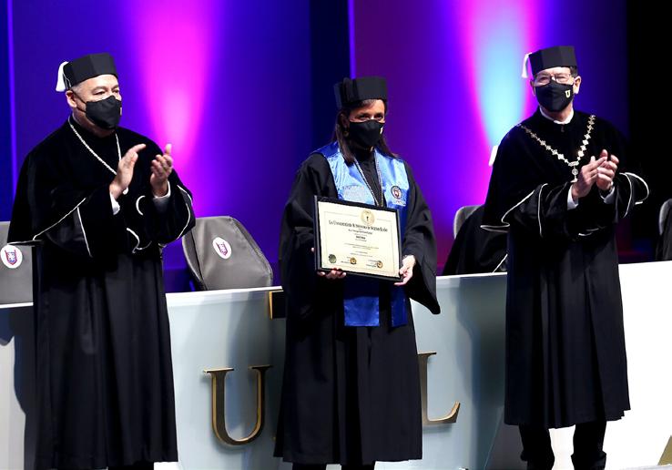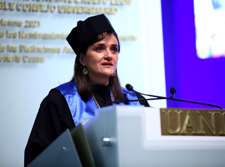 En su discurso de agradecimiento, la ahora Doctora Honoris Causa por la UANL, se dijo muy orgullosa de ser universitaria y expresó lo honrada y agradecida que se sentía por el reconocimiento de su Alma Máter.