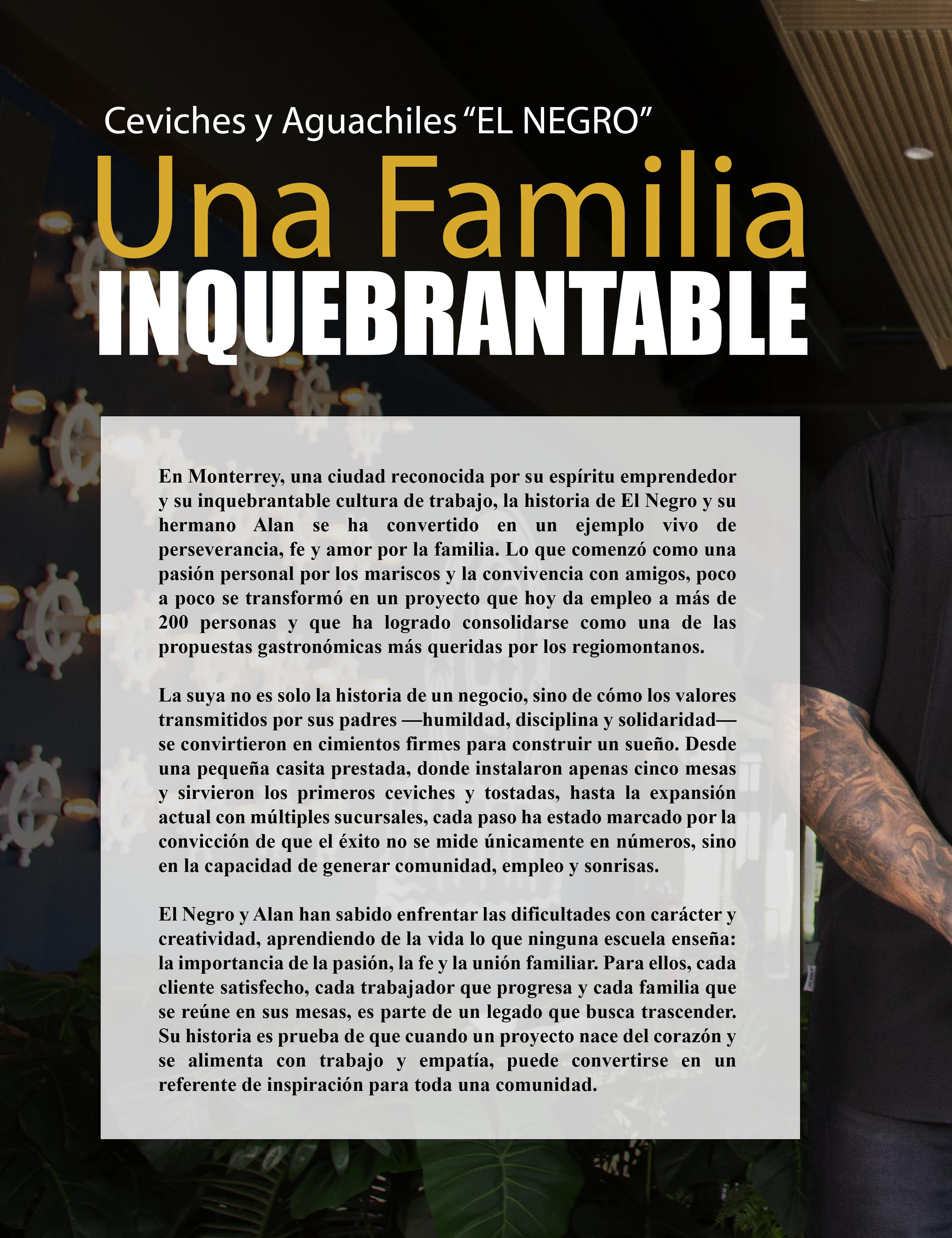 Su camino demuestra que el verdadero éxito no se mide solo en cifras, sino en la capacidad de mantenerse fiel a los valores que los vieron crecer: la fe en Dios y en la vida, la empatía hacia los demás, la importancia de la familia y la gratitud por cada oportunidad. En cada platillo servido, en cada charla de emprendimiento y en cada historia compartida con sus clientes, los hermanos transmiten un mensaje claro: sí se puede. Con carácter, disciplina y pasión, cualquier obstáculo puede convertirse en una oportunidad, y cualquier tropiezo en un aprendizaje. El Negro lo resume con sencillez: “Yo quiero dejar un legado, que el día que no esté digan: tu familia me dio trabajo, me ayudó, me apoyó. Con eso ya gané”. Y Alan lo complementa con un recordatorio para todos: “Nunca dejen de intentarlo. Si la primera vez no funciona, sigan adelante, porque siempre habrá alguien allá afuera que valore lo que hacen”. Así, entre mariscos, música y sonrisas, estos hermanos regios nos recuerdan que emprender es más que un negocio: es un acto de fe, un compromiso con la comunidad y, sobre todo, una oportunidad de dejar huella en la vida de los demás.