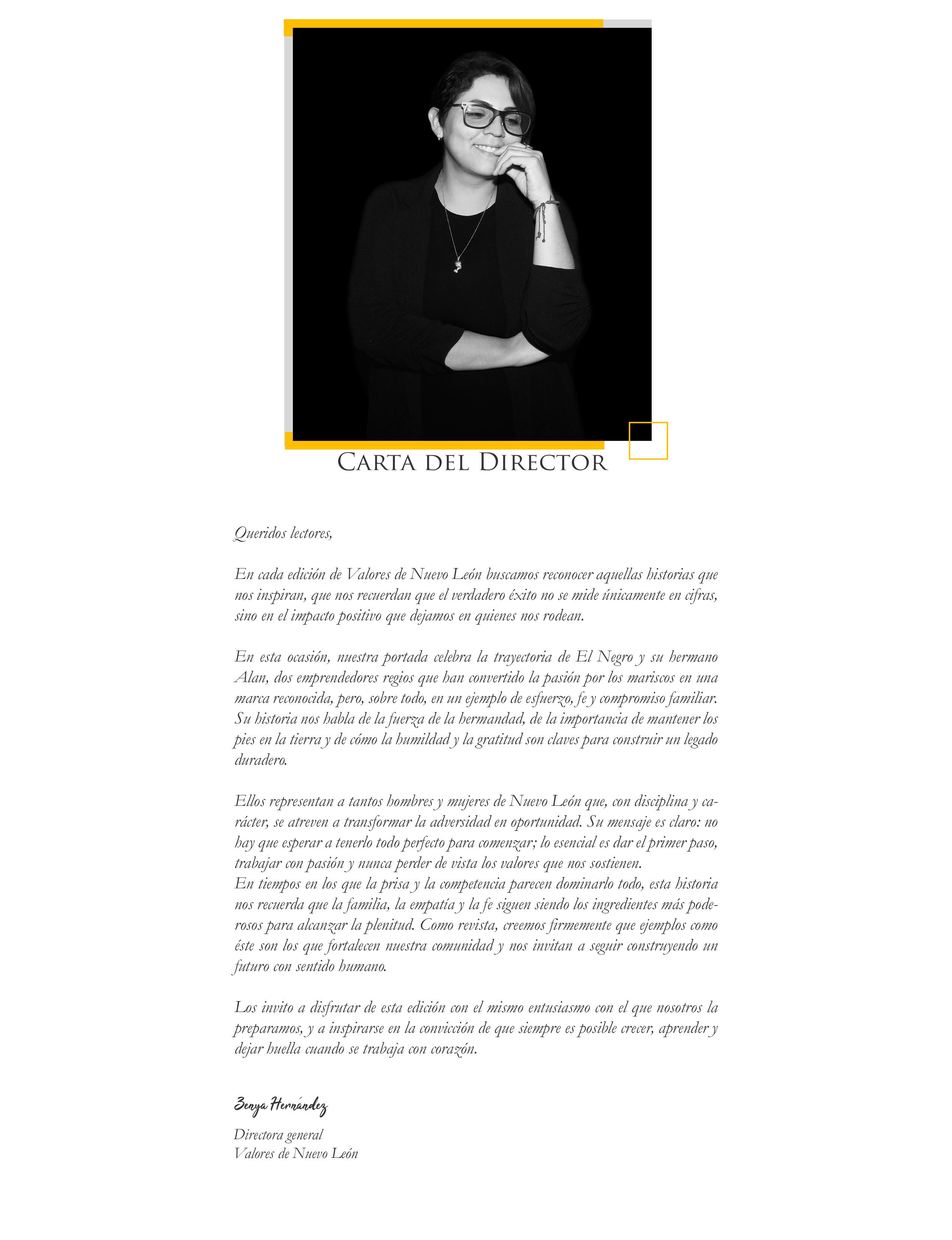 Valores de Nuevo León, revista mensual #158 Septiembre 2025. Editor Responsable: Zenyazhent Martha Esperanza Hernández Valladares. Número de Certificado de Reserva otorgado por el Instituto Nacional del Derecho de Autor: 04 - 2016 - 071413220700 - 102. Número de Certificado de Licitud de Título y Contenido: 16776. Domicilio de la Publicación: Álvaro Obregón 315, Colonia Centro C. P. 64000, Monterrey Nuevo León, México Imprenta: SAGA IMPRESOS. Privada Felipe Ángeles No. 3003 Col. Argentina C. P. 64550, Monterrey Nuevo León, México Distribuidor, Zenyazhent Martha Esperanza Hernández Valladares, Bosques de Linda Vista, Del Caporal 937 San Nicolás de los Garza, C.P.66473 Nuevo León, México.