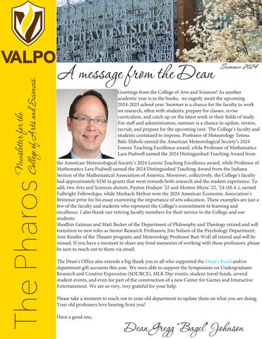 Welcome to the conferring of degrees for the Class of 2024 graduates of Valparaiso University. Today, we celebrate our graduates and wish them well as they continue their journeys. Their relationship with Valpo does not end here. We hope it has just begun. This University will forever be a place they may call home, a place where memories were formed,