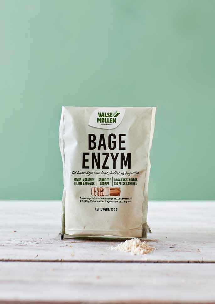 Du skal bruge 20–30 g bageenzym pr. kg mel. Bland bageenzymet godt med de tørre ingredienser, før du tilsætter væsken. Følg herefter vejledningen i din opskrift.