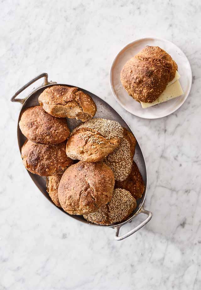 Du kan også bage rundstykker af den samme opskrift. Del dejen i 20–25 stykker, form dem til rundstykker og bag dem i ca. 20–25 minutter, til de er sprøde og gyldne.