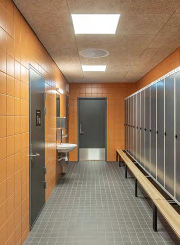 – Det er også mye kompleks logistikk med ren og skitten sone ved garderobene i kjelleren. Da er det viktig å gi de ulike rommene ulik karakter slik at det blir enkelt å se hvor man skal. Vi har oppnådd dette med tydelige fargevalg og åpne glassflater som gir god oversikt, sier han.