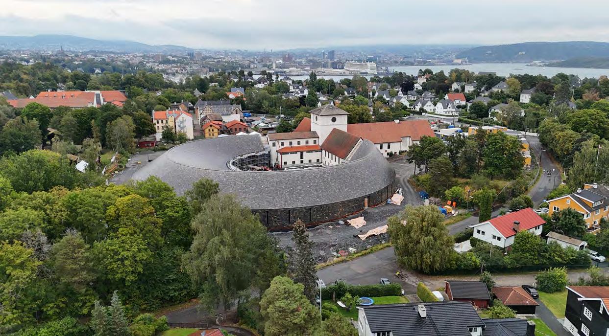 – Vi bygger tross alt et vikingtidsmuseum for Norge og bruker eksempelvis skifer fra Otta, tilslag på betongen fra Kragerø og en limtrekonstruksjon