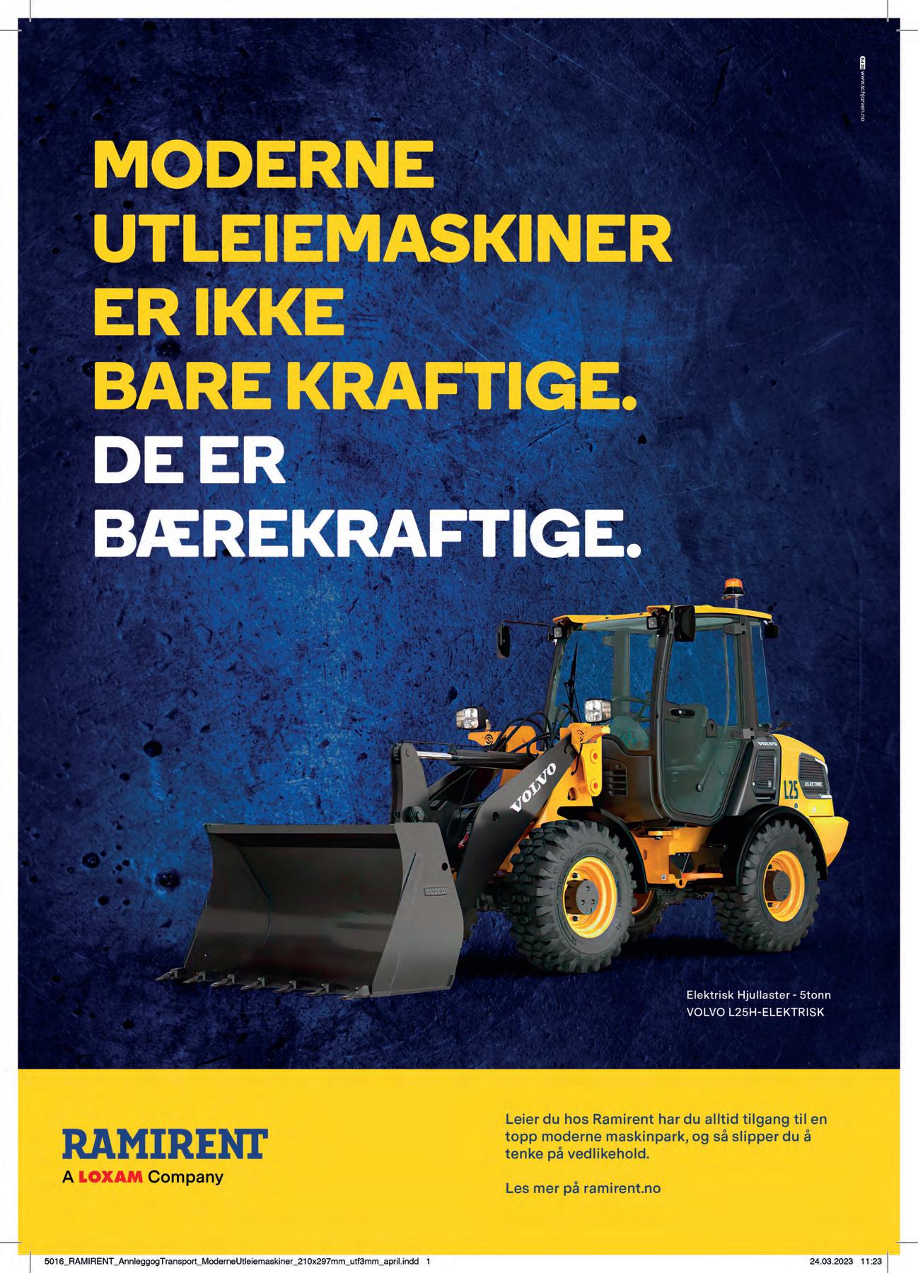 – Våre kunder slipper store investeringer på kjøp av maskiner, noe som frigjør kapital. Gjennom gode rutiner og kompetanse for service og vedlikehold sørger vi for at maskinene er i god stand og at levetiden på maskinene blir så lang som mulig. Dette bidrar til reduksjon i behovet for nye kjøp, og senker ressurs- og miljøbelastningen betydelig, sier Stensby. Maskinutleie i Ramirent kan dokumenteres som et sirkulært tiltak gjennom fire nøkkelområder, forteller Stensby. Disse fire områdene er nøyaktighet, nærhet, utnyttelse og vedlikehold. Nøyaktighet går på valg av riktig maskin til arbeidet, slik at effektiviteten maksimeres. Nærhet er knyttet til at kundesentrene til Ramirent som regel ligger i nærheten av byggeplasser, og at transportbiler har med utstyr både på vei til og fra byggeplassene. >>