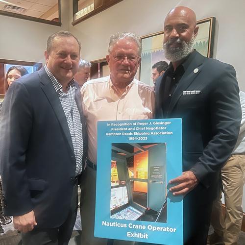 On November 7, 2024, Virginia’s maritime community gathered at Nauticus for the unveiling of “Nauticus Reimagined,” which embraces the successes of the past while charting a sustainable course for the next generation of visitors, including young people who may discover their interest in working in the maritime industry. A highlight of the evening was the dedication of the crane operator exhibit for Roger J. Giesinger, who served as President & Chief Negotiator for the Hampton Roads Shipping Association (HRSA) from 1994 to 2023. Presented by the Virginia Maritime Association (VMA) and Hampton Roads Shipping Association (HRSA), this dedication recognized Roger’s nearly 30 years of commitment