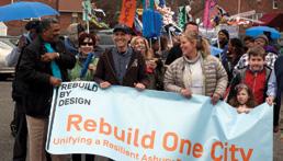 Alen was one of four New Yorkbased nonprofits selected to develop and manage Rebuild by Design, an initiative of President Obama’s Hurricane Sandy Rebuilding Task Force and the U.S. Department of Housing and Urban Development (HUD). The project was developed to address the structural and environmental vulnerabilities that Hurricane Sandy exposed in communities throughout the region and develop fundable solutions to better protect residents from future climate events. Above, a community parade in Asbury Park, NJ.