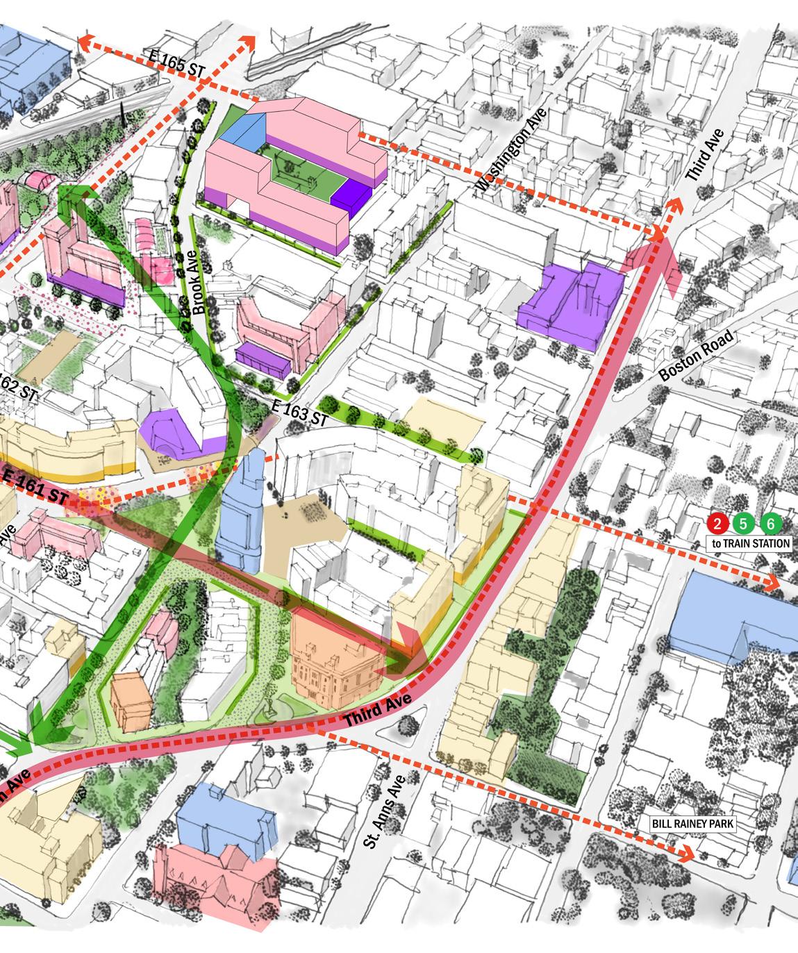 • Redesign Morrisania Air Rights plaza and gradually incorporate station entrances and station functions.