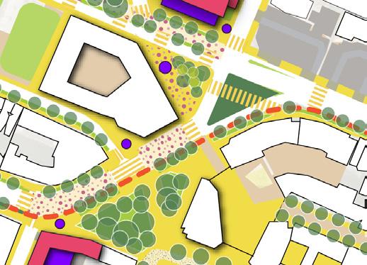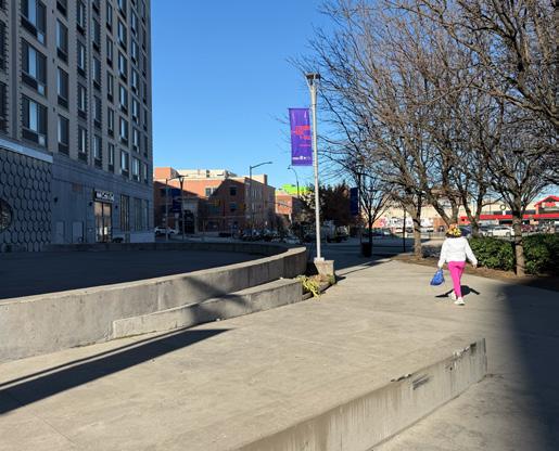 These modest but visible investments would formalize spaces that already exist, turning leftover institutional buffers into active civic areas. Building on early activations, they would improve walkability, support everyday use, and set the groundwork for longer-term neighborhood transformation.
