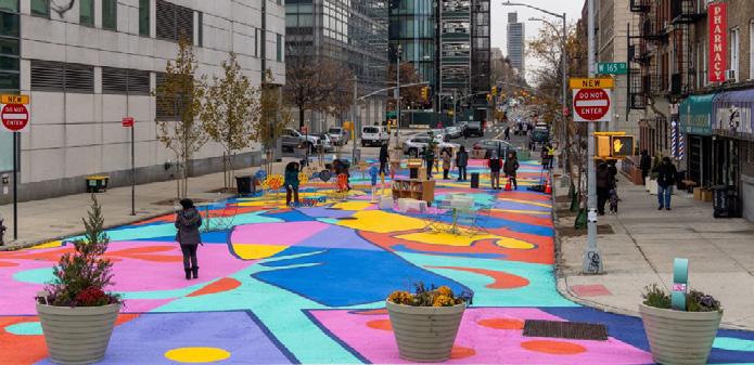 Around the Bronx Music Hall, the wide streets and underused forecourts along East 161st Street and Brook Avenue can be repurpose using paint,