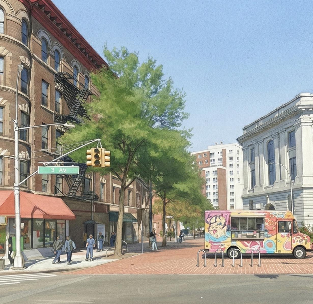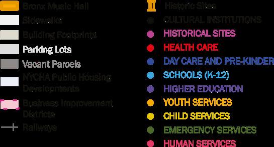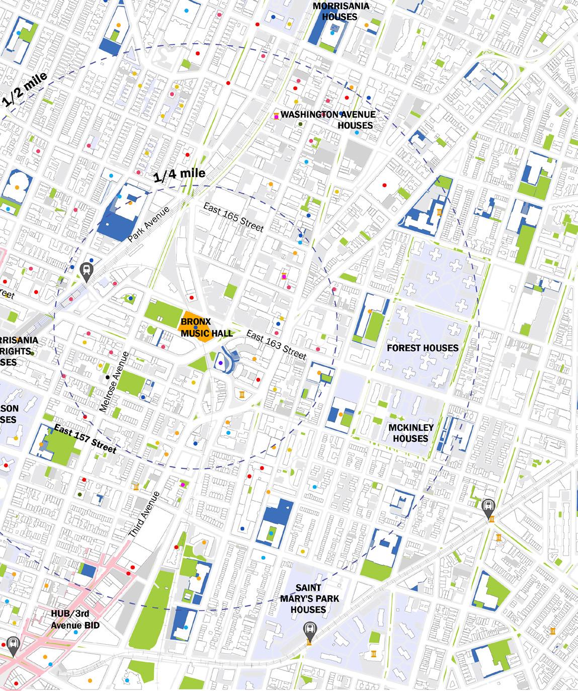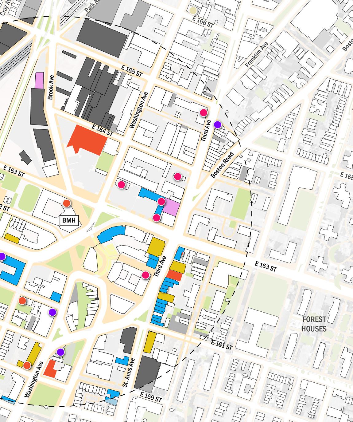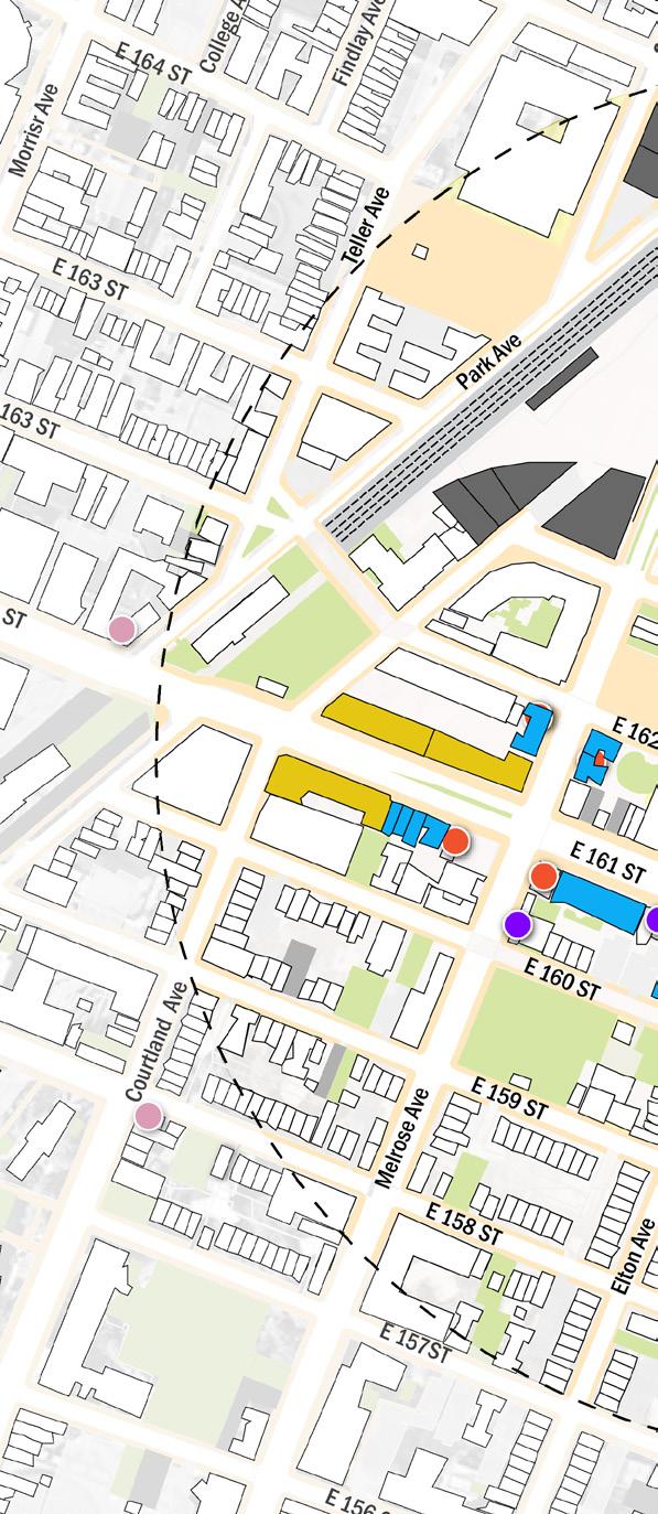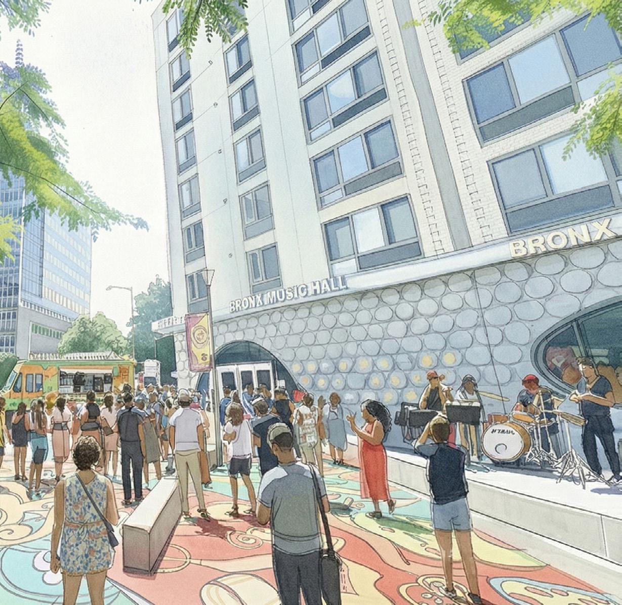 At the heart of this vision is the Bronx Music Hall (BMH), poised to serve as a cultural and civic anchor that draws people, activity, and identity to the corridor. Surrounding institutions—including historic landmarks, Boricua College, the Bronx Courthouse, WHEDco, Bronx Defenders, and a resilient network of local businesses—form a strong community ecosystem capable of sustaining long-term growth when supported by intentional planning.