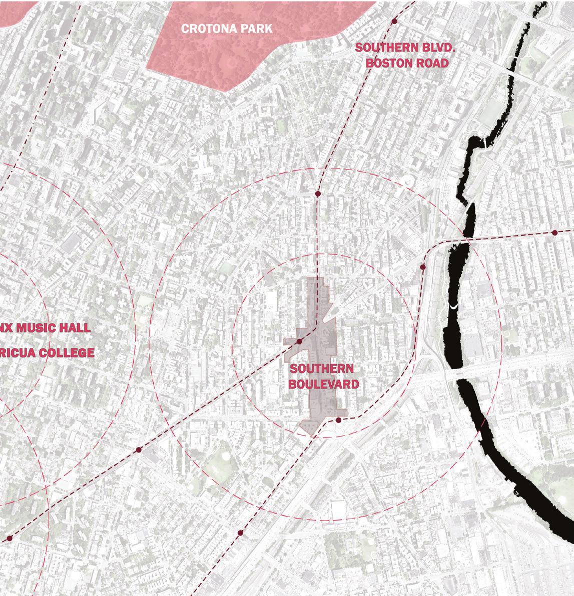 Despite recent development, the study area remains fragmented. Pedestrian movement is neither comfortable nor intuituve, and awareness of existing amenities remains limited. While Bronx Music Hall holds strong potential as a cultural anchor, its peripheral context—shaped by heavy traffic, industrial edges, limited complementary programming, modest architectural presence, and a lack of programmed open space—currently constrains its ability to attract and engage broader audiences.