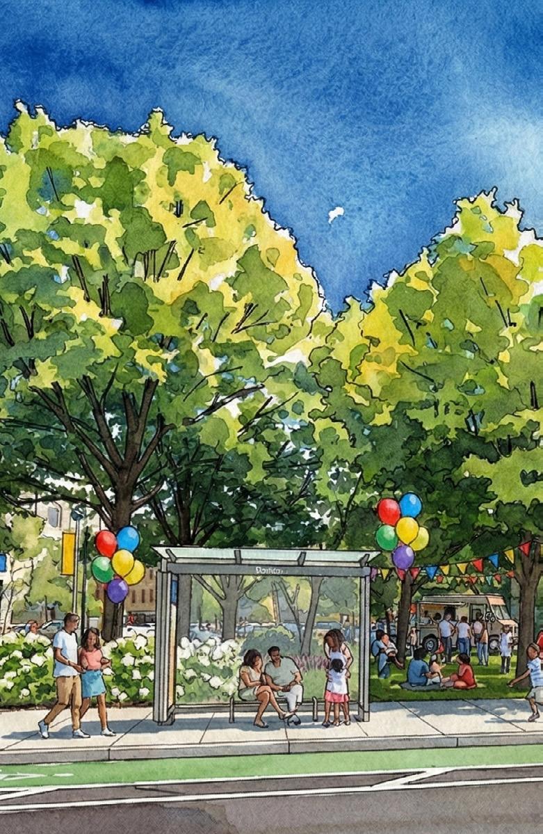 • Upgrade bus stops with improved shelters, lighting, and wayfinding.