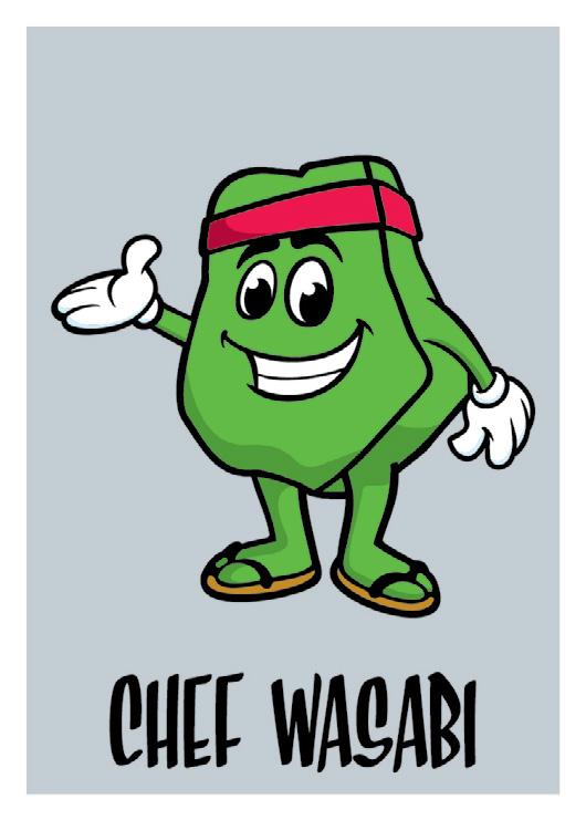 Occupation: Chef, professional racer Favourite Pastime: Running, cooking Make-Up: Whether you buy wasabi in root form or as a green powder, there is one thing that is for sure - Chef Wasabi is one spicy addition to our Sushi Race!