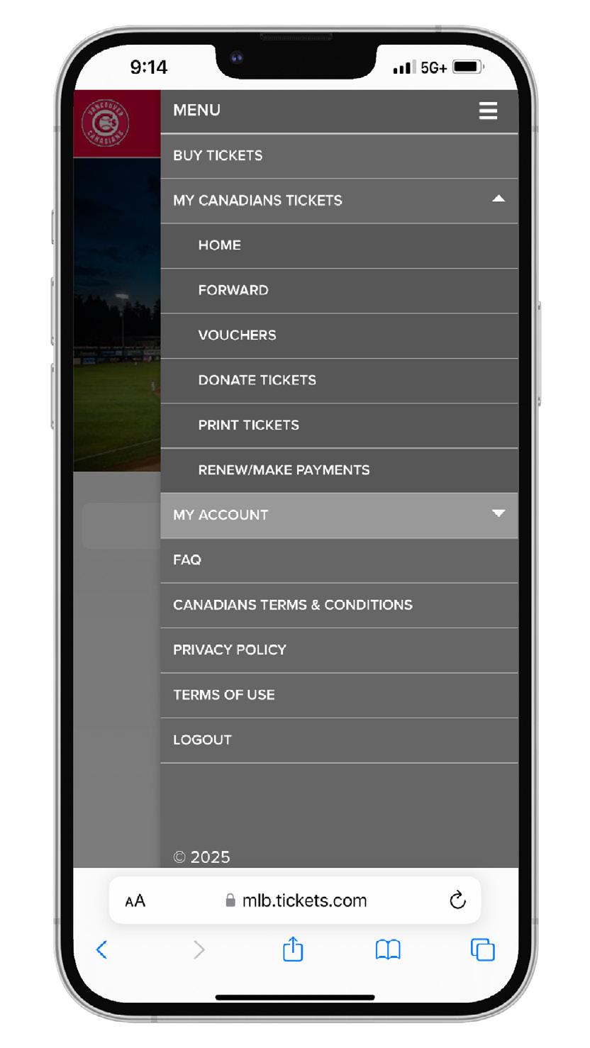 1. Go to CanadiansBaseball.com. Click on “MY C’S TICKETS LOGIN” located in the main menu.