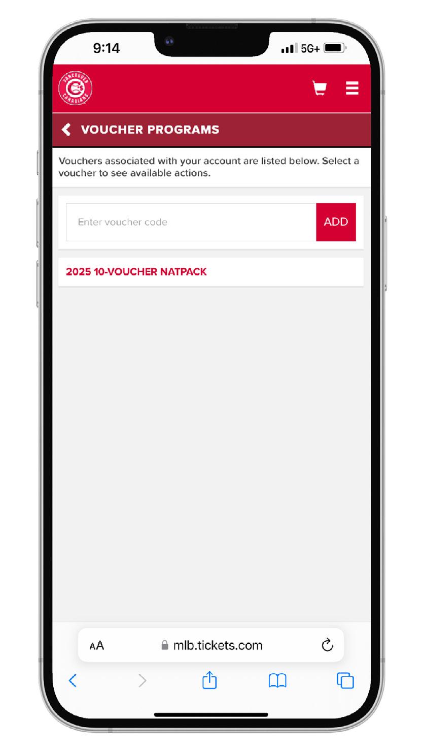 1. Once logged in, navigate to the “Vouchers” section under the “My Canadians Tickets” tab in the menu.