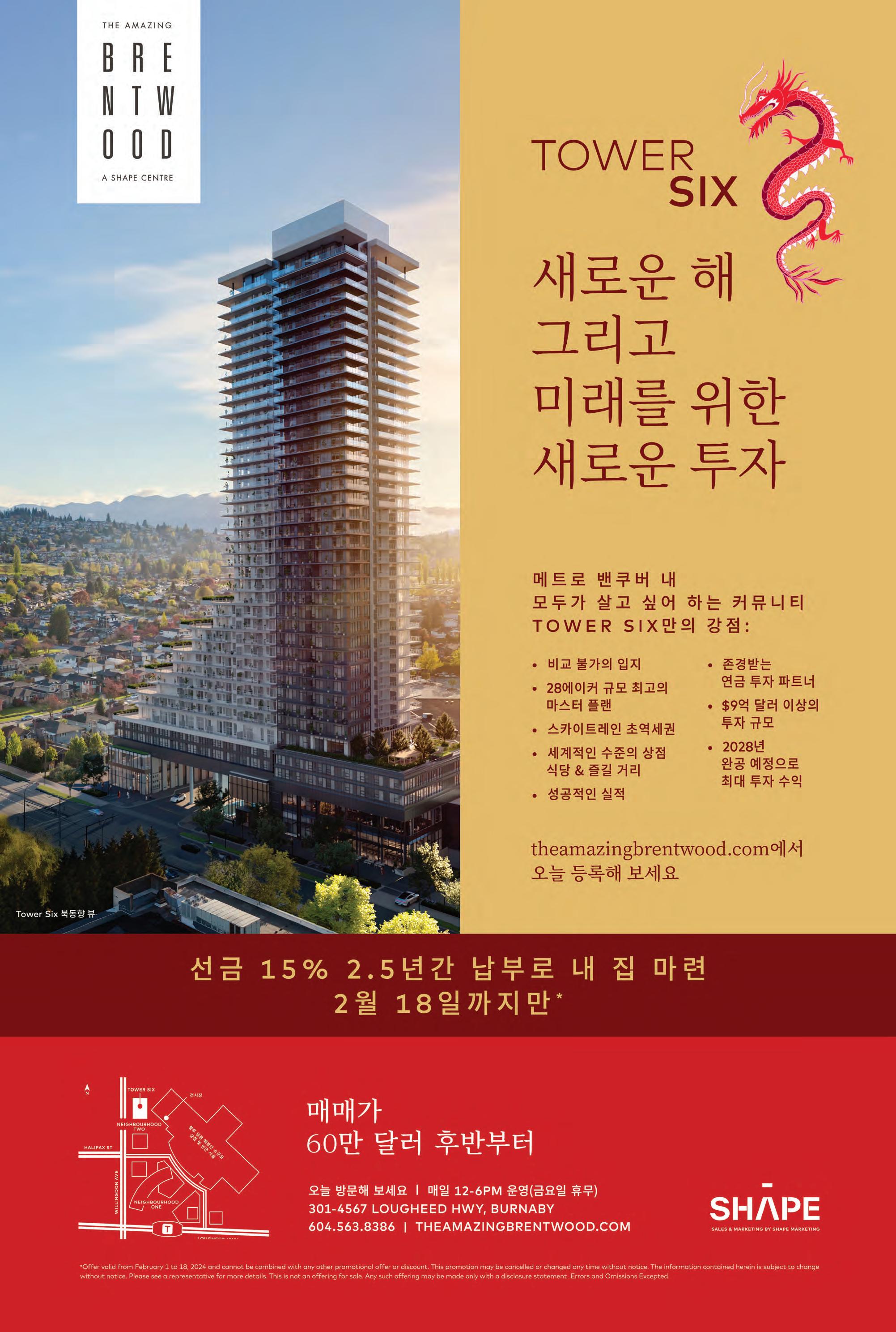 2024년 3월 6일 수요일 A10 조선일보 전 면 광 고 밴쿠버 조선일보에 기사 제보와 기고는 news@vanchosun.com 을 이용해 주십시오.