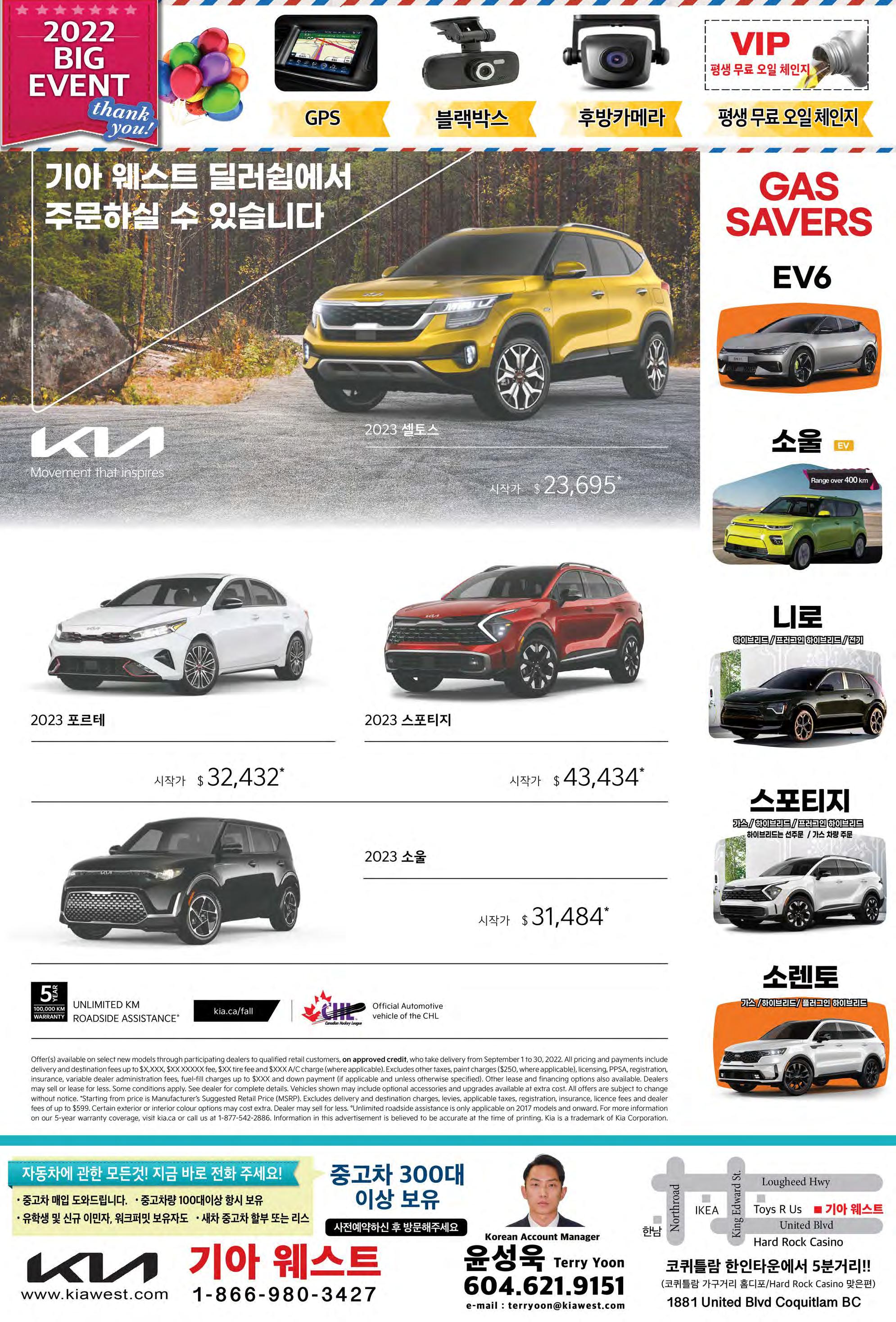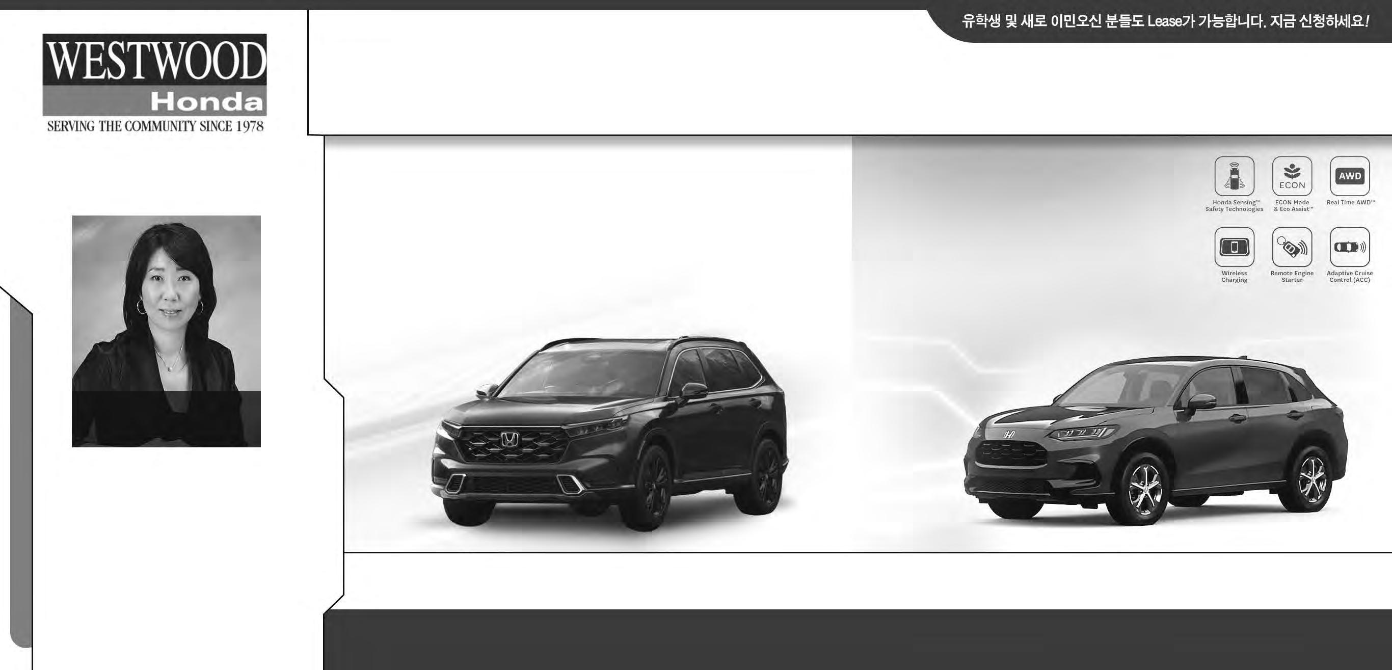 2022년 10월 1일 토요일 A5조선일보 전 면 광 고 보다 좋은 서비스를 위해 사전예약 부탁 드립니다. Office 604-461-0633 Cell 604-787-7333 2400 Barnet Hwy. Port Moody 오늘 혼다 Winnie를 방문하셔서 확인해보세요 이진아 를 위한 최고의 선택 Winnie Lee 지금타고 계시는 차량을 가지고 오셔서 Honda 차량과 Trade하세요! 리스전문 2023 Full-Changed Re-designed 편안함과 스타일 모두 확보한 HR-V완전히 새로워진 CR-V HR-V 지금 오더 가능합니다 사전예약 604-787-7333 UPGRADE
