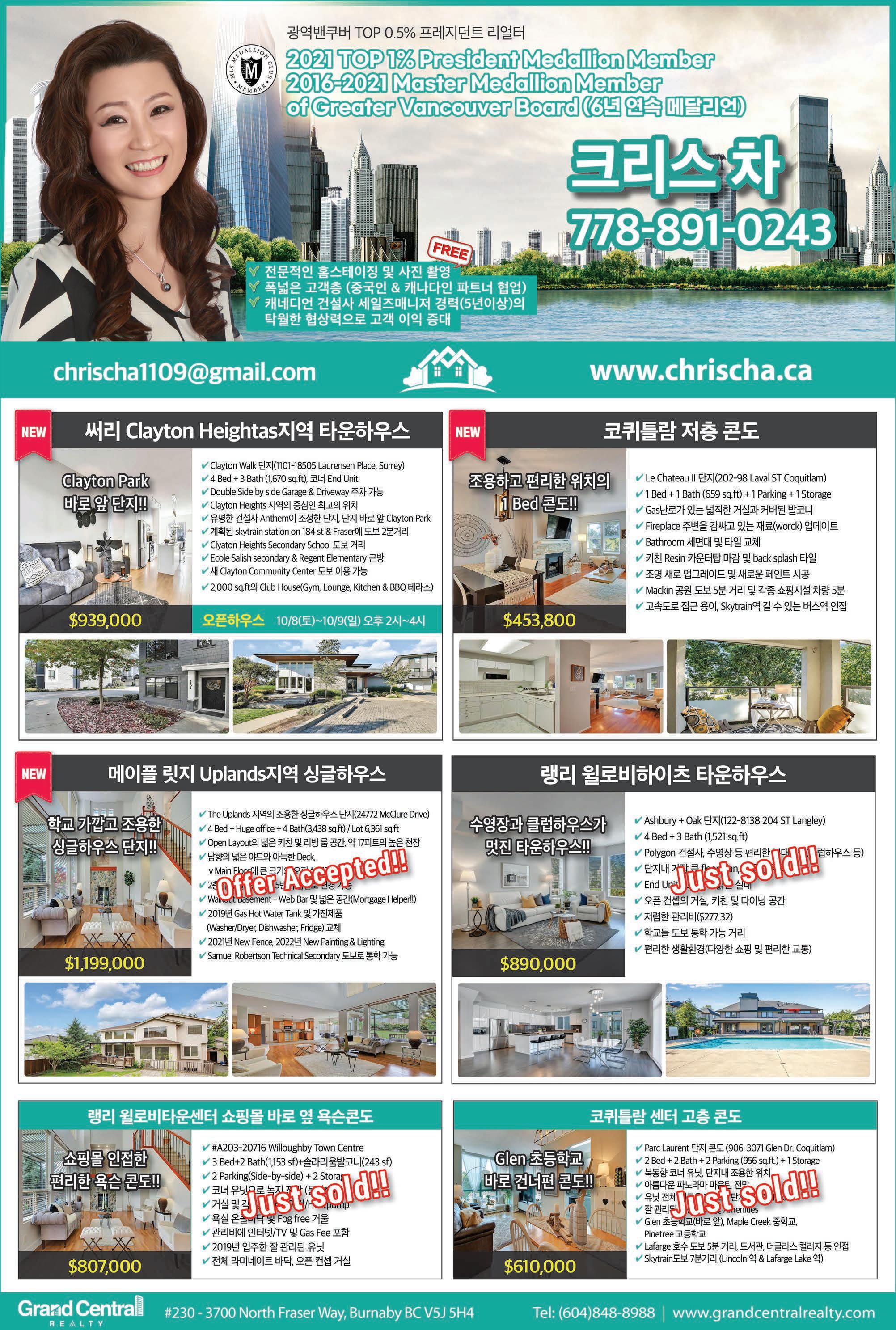 C15조선일보 Sutton Group Westcoast Realty #301-1508 W. Broadway Vancouver V6J 1W8 www.bopark.ca 박보영 부동산은 쉬지 않고 여러분들을 위해서 뜁니다. 박보영 부동산 Vancouver West 전문 Realtor “29년 경력의 전문가” Bo Park(박보영) 직통 : 604) 377-7899 Email : bo@bopark.ca ■ 전문 지역 ■ Vancouver WestㆍDowntown YaletownㆍCoal Harbour ■ 경력: 15 years+ ■ 실력: 실적 상위 0.1% (MLS FVREB) 메달리언 클럽멤버 ■ 열정: 7am-11pm 7days a week (무료상담) 철저한 전략과 분석! Smart Buying & Selling www. MrOpenHouse.ca 건축공학 및 건설관리전공 리얼터. 전문성에서 앞서갑니다! #140 4664 Lougheed Hwy Burnaby BC V5C 5T5 TEL: 604-299-9680 Sutton Group 1st West Realty 604.781.3467 rick.royal1st@gmail.com 우종훈 부동산 2015 - 2021 7년 연속 광역밴쿠버 TOP 5% REALTOR 비즈니스 매매 2015 2016 2017 2021 2018 2019 2020 사우스 써리 $2,200,000 대지 면적 6,104 sq.ft 실내면적 4,774 sq.ft 방 6개 화장실 7개 조용한 주택가 남향집 주변 좋은 학군과 공원 브랜트우드 지역 신규 분양중! 어메이징 브랜트우드 5 최고의 위치, 럭셔리 빌리지, 미래의 명품관이 입점되는 고급단지 Solo 4 고급 대형 슈퍼 Whole food, Starbucks 와 각종 편의 시설이 구비된 대형단지 Concord 오아시스 유리로 닫을수 있는 발코니 공간! 조용하고 안전한 주택가 고급단지 ★ 로히드 버퀴틀람 지역 ★ ★ 랭리 윌로비 지역 ★ Burquitlam Precidia Foxridge Home Elmwood By Marcon Hayer Town Centre 저층 콘도 분양 임박 177세대 먼저 분양 Aston Townhome 3베드부터 4베스까지 곧 분양 시작 싱글하우스, 로홈 분양중 Master Medallion Member 코퀴틀람 센트럴 $899,900 실내면적 966 sq.ft 방 3대 화장실 2개 골프장 뷰JUSTSOLD 랭리 윌로비하이츠 $629,000 실내면적 920 sq.ft 방 2개 화장실 2개 5월 입주 예정 전매 물건 파크엔라이드 5분거리JUSTSOLD 코퀴틀람 센트럴 $789,900 실내면적 863 sq.ft 방 2대 화장실 2개 퓨쳐 공원뷰, 남향JUSTSOLD 뉴 웨스트민스터 Sold Over Asking $200,000 $899,900 실내면적 1,410 sq.ft 방 3개 화장실 3개 + 덴 모던 디자인, 오픈 컨셉 5분 거리 쇼핑몰 포트 무디 $728,000 실내면적 1,012 sq.ft 방 2개 화장실 2개 + 덴 포트무디 서터브룩 빌리지 각종 편의시설 도보거리 코퀴틀람 센트럴 $3,199,000 대지 면적 6,487 sq.ft 실내 면적 5,575 sq.ft 방 7개 화장실 8개 조용한 주택가 남향집 지하 렌트스윗 뉴웨스트민스터 빅토리아 힐 $539,900 실내면적 663 sq.ft 1 베드 + 1 베스 마스터플랜 커뮤니티 Onni 개발사 랭리 윌로비하이츠 $1,169,000 실내면적 1,766 sq.ft 방 3개 화장실 3개 코너 유닛, 밝은 채광 주변의 편의 시설 및 학교 랭리 월넛그로브 $1,780,000 대지 면적 3,767 sq.ft 실내면적 3,425 sq.ft 방 5개 화장실 4개 조용한 주택가 골프장 뷰 지하 렌트스윗JUSTSOLD 랭리 월넛그로브 $1,099,000 실내면적 2,229 sq.ft 방 3개 화장실 3개 조용한 주택가 5분거리에 학교, 쇼핑, 공원JUSTSOLD 랭리 윌로비하이츠 $889,900 실내면적 1,414 sqft 방 3개 화장실 3개 유명건설사 폴리곤 단지내 헬스장, 수영장 각종 편의시설JUSTSOLD 랭리 윌로비하이츠 라티마 빌리지 $519,900 실내면적 669 sq.ft 1 베드 1베스JUSTSOLD 써리 센트럴 $489,900 실내면적 517 sq.ft 방 1개 화장실 1개 전철역 및 SFU, 시청 5분 거리JUSTSOLD JUSTSOLDJUSTSOLD JUSTSOLD 랭리 윌로비하이츠 $779,900 실내면적 1,381 sq.ft 방 3개 화장실 2개 욕슨콘도 전매 7월 입주 예정JUSTSOLD 랭리 월넛그로브 스시 레스토랑 써리 길포드 빙수가게 $248,900 플라자안에 위치 트래픽이 많음. 매상 꾸준히 증가OfferAccepted 코퀴틀람 버크마운틴 $2,500,000 대지 면적 5,230 sq.ft 실내 면적 3,314 sq.ft 방 4개 화장실 4개JUSTSOLD 7년 연속 광역 밴쿠버 TOP 5% REALTOR Master Medallion Member / 604.781.3467 / rick.royal1st@gmail.com