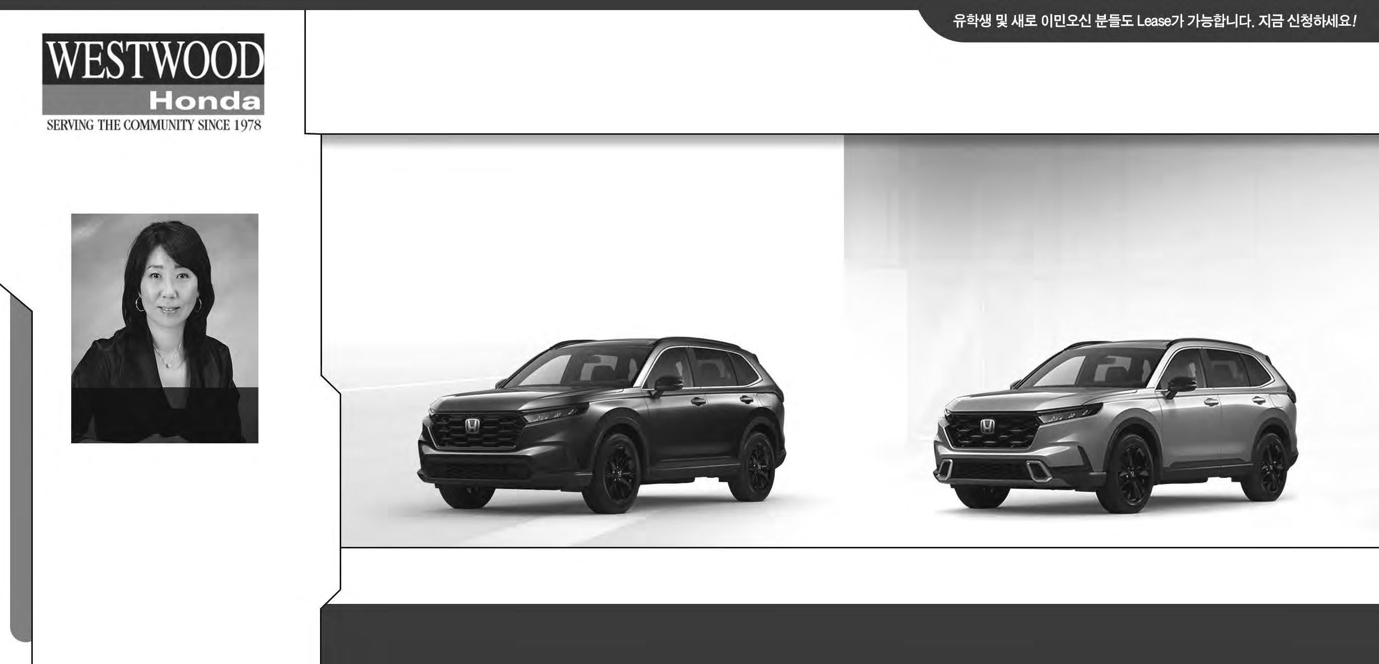 2022년 10월 29일 토요일 A5조선일보 전 면 광 고 보다 좋은 서비스를 위해 사전예약 부탁 드립니다. Office 604-461-0633 Cell 604-787-7333 2400 Barnet Hwy. Port Moody 오늘 혼다 Winnie를 방문하셔서 확인해보세요 이진아 를 위한 최고의 선택 Winnie
