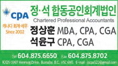 A1조선일보 604·568·6633 308A 4501 North Rd Burnaby 지 건 주 공인회계법인 회계/세무/감사/사업계획 및 상담 Tel: (604)936-5222 / tjoffice@tjoocpa.com #320-4501 North Road, Burnaby, BC, V3N 4R7 주태근/앤디김 회계법인 고객을 성심껏 섬기는 Joo & Kim CPA Inc. Steve Chung T. 604.828.8949 (빨리빨(리) 팔구사구) 정성을 다하는 정성채 부동산 Royal Pacific Realty www.goodhouse.ca TEL: 604.433.0787 FAX: 604.433.0797 #203-4885 Kingsway, Burnaby, BC V5H 4T2 상법 및 부동산 법 / 각종 법인 관련 업무 ☎(604)877-1178 The Vancouver Korean Press Ltd. (Since 1986)제3987호 2022년 10월 29일 토요일 vanChosun media vanchosun.com <밴쿠버 판> 加 경제 플러스 성장에도… 경기 침체는 온다 나다의 경제가 서비스 의 분전에 선방하 했지만, 성장 속도가 점점 느려지면서 조만간 경기 침체가 올 가 성이 아지 고 있다. 2 일 연방 통계 은 지난 나다의 가 전달 대비 0.1 가 성장하면서, 개 연속 러스 성장세를 기록했다고 발 표했다. 통계 에 르면 에 이어 9 의 경제 성장 잠정치도