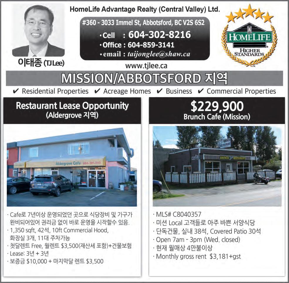C17 조선일보 Errors & Omissions - The information contained herein is from the owners of the businesses, therefore no warranties or representations expressed or implied are made to the accuracy and liability of their businesses. 2629 Kingsway, Vancouver B.C. Selmak Realty Ltd. 778-322-7942 이경수 공인중개사 Bond Lee Suchi Take Out North Vancouver $160,000 $3,275(include all & GST), September 2026,11-8/7 Days Owner Retiring , Liquire Licence , One owner with employee 운영 쉬운 복권 및 편의점 Vancouver $138,000 $2,547(all