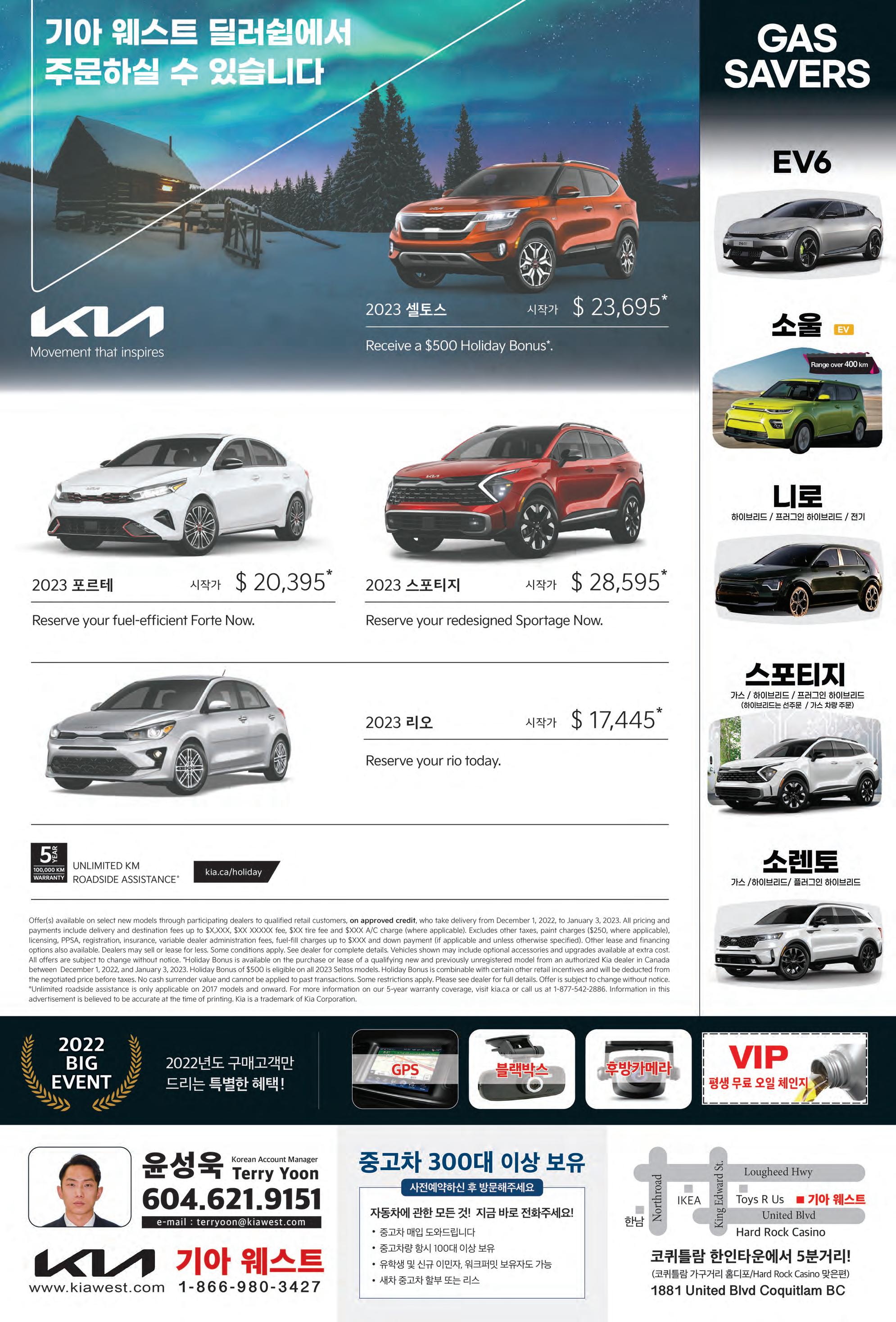 2022년 12월 23일 금요일 B6 조선일보 604-936-6316 문의 전차종 확실하게 정비해 드립니다 2817 Spring St Port Mody BC V3H 4C6 Moody St St. Johns St North Rd Coquitlam Center Spring St Clarke St ClarkeSt Hugh st Williams St 퍼스트클래스 오토바디 Rocky Ponit Park Port Moody역 (WestCoast Express) Young Choi 기계 Engineer 18년(한국) 에드먼튼 NAIT 정비과 졸업 캐나다 자동차 정비 15년 정비소 운영 15년 해피 오토 자동차 정비 포트무디 한인 자동차 정비 샵 www.happyauto.ca 중고차 매매 전 인스펙션해 드립니다 꼼꼼하게! 완벽하게! 안전하게! 24시간 상담가능! 최고의 장비로 업그레이드 된 서비스! Tel.604-514-2269 / Fax.604-514-2237 Cell.604-908-1476 20029 Industrial Ave. Langley, BC V3A 4K6 랭리 한아름 10 Hwy Industrial Ave Logan Ave FraserHwy 200 St 오메가 오토바디 찾아오시는 길 ICBC Claims 및 개인 수리 전문 자동차 유리교환 및 수리 전문 차량 무료 대여 및 출장 견적 및 무료 서비스 평생보장되는 완벽한 Color Match 36년 경력에 최고의 기술진으로 고객만족 ICBC지정업체로써 사고시에 ICBC에 가실 필요가 없습니다.