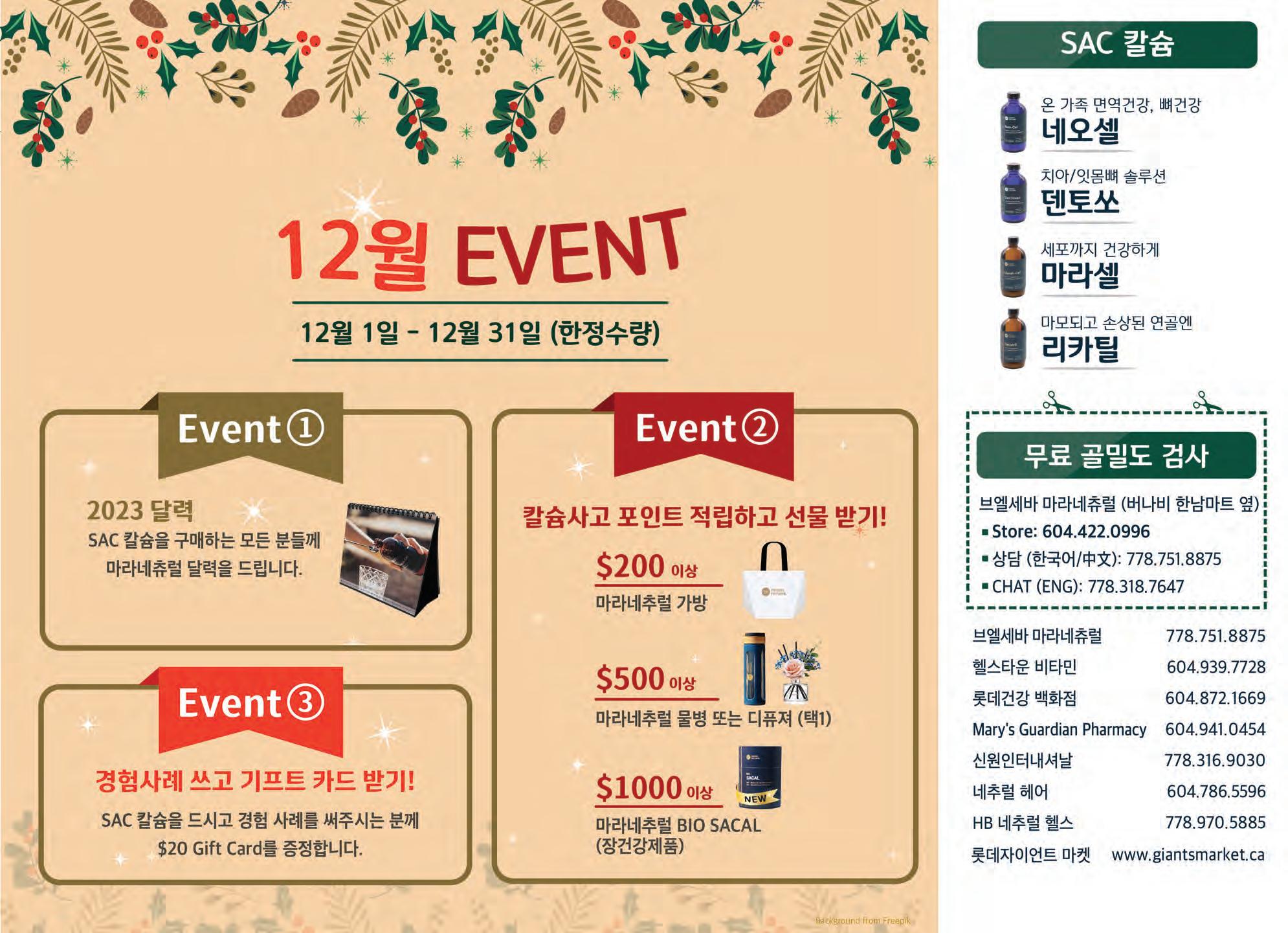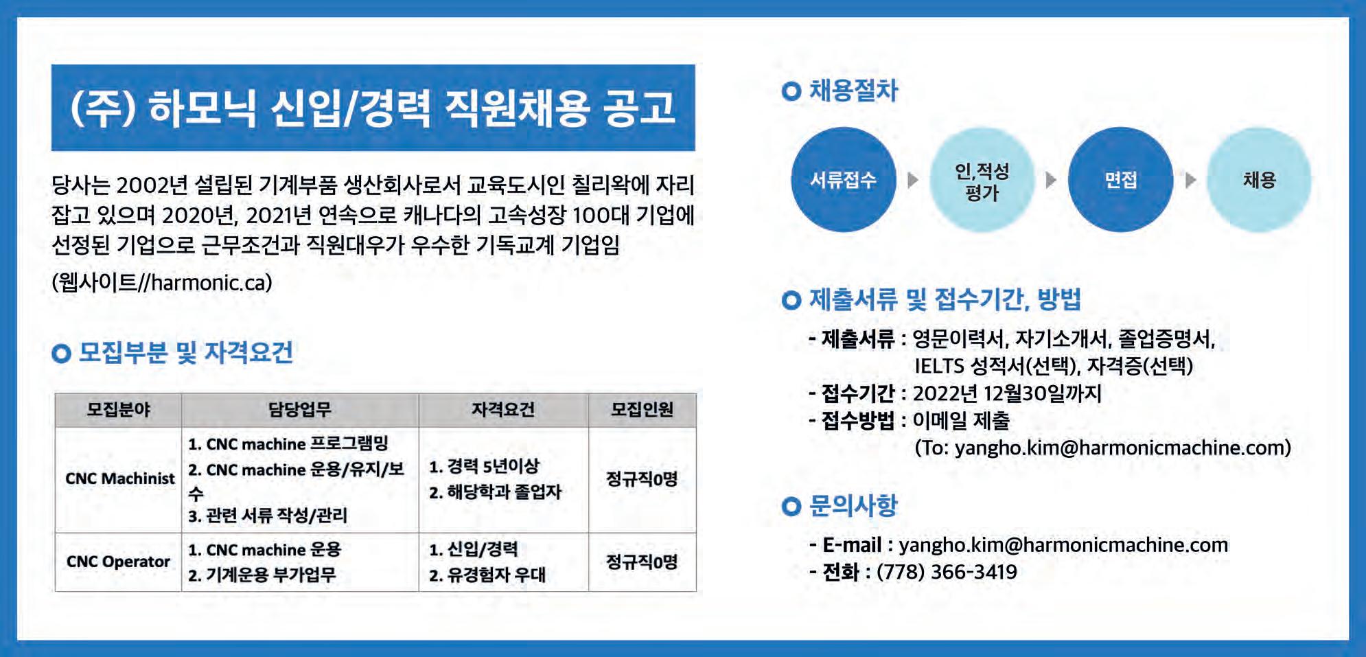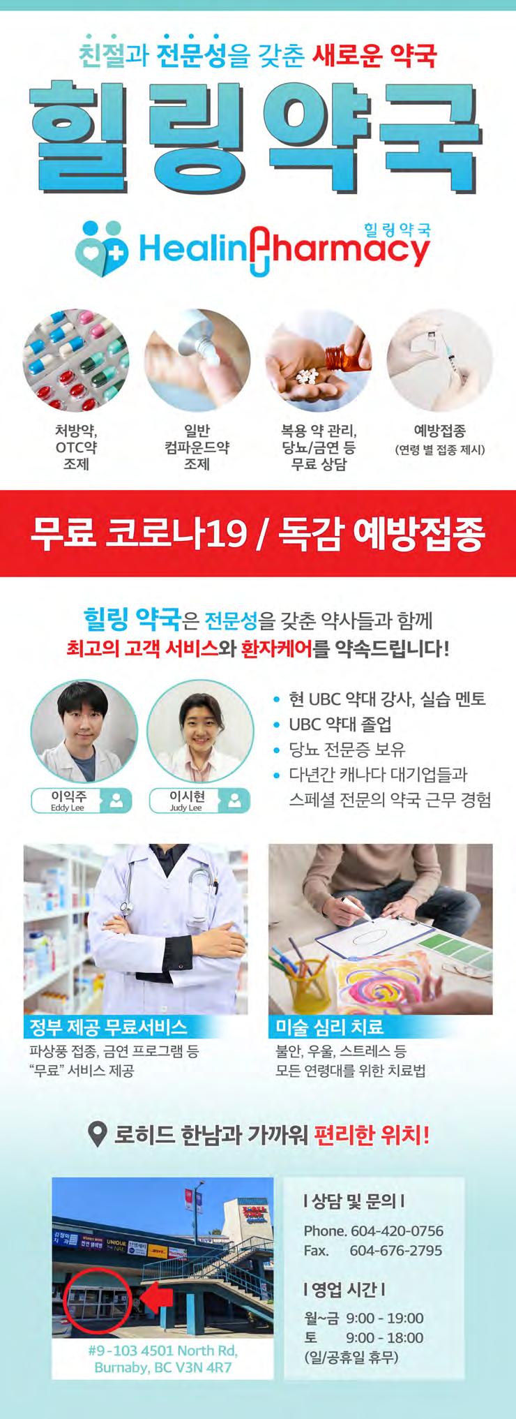 2022년 12월 24일 토요일 B7 조선일보 전 면 광 고 밴쿠버 조선일보에 기사 제보 와 기고 는 news@vanchosun.com 을 이용해 주십시오. 행복한 삶의 디자인 www.vanchosun.com Chosun Classified 밴조선 업소록 무료 업소 등록 www.vanchosun.com/stores 광고마감 화 목 금 요일 : 오전 10시 광고료 1 Unit : $5 / 월 $60 크레딧카드 선불결제 자세한 안내 및 문의 604-877-1178 만능공사 집 안팎의 모든 문제를 한번에 해결! - 지하마감, 구조변경 - 마루, 카페트, 타일시공, 몰딩 - 실내외 페인트 - 화장실 개조 및 PRO 실리콘 마감 - 천장, 누수, 자국, 벽, 문파손 완벽 보수 - 싱크 교체 및 수리, 분쇄기 교체 - 거터 페시아보드 완벽 보수 - 부엌 개조 및 씽크대 설치 778-237-9110 세포를 건강하게 하는 독일 피엠 효소 * 제품의 효능 1. 세포회복 2. 산소공급 증가 : 25% 3. 체온 1.5도 상승 - 2년 저온 숙성해서 만든 순수 천연 효소이며 독일에서 생산합니다. -세포에 초점이 맞춰 있기 때문에 나이, 체질,