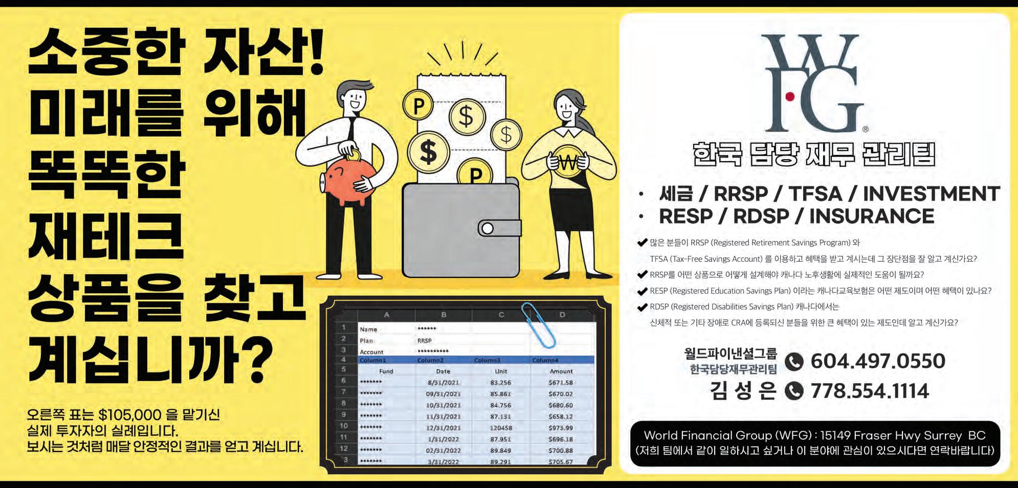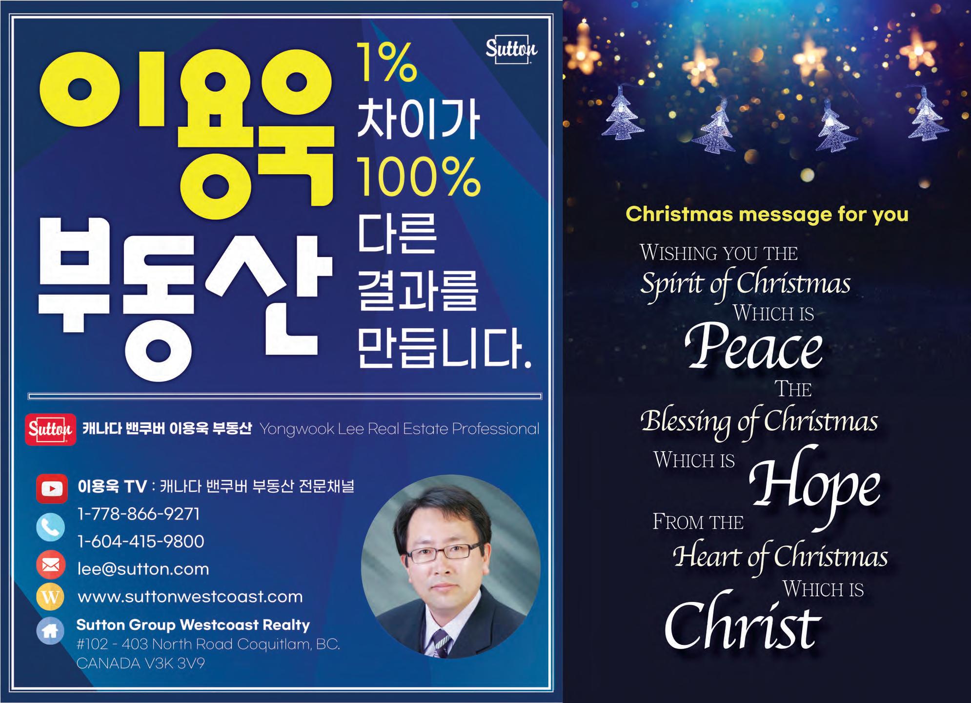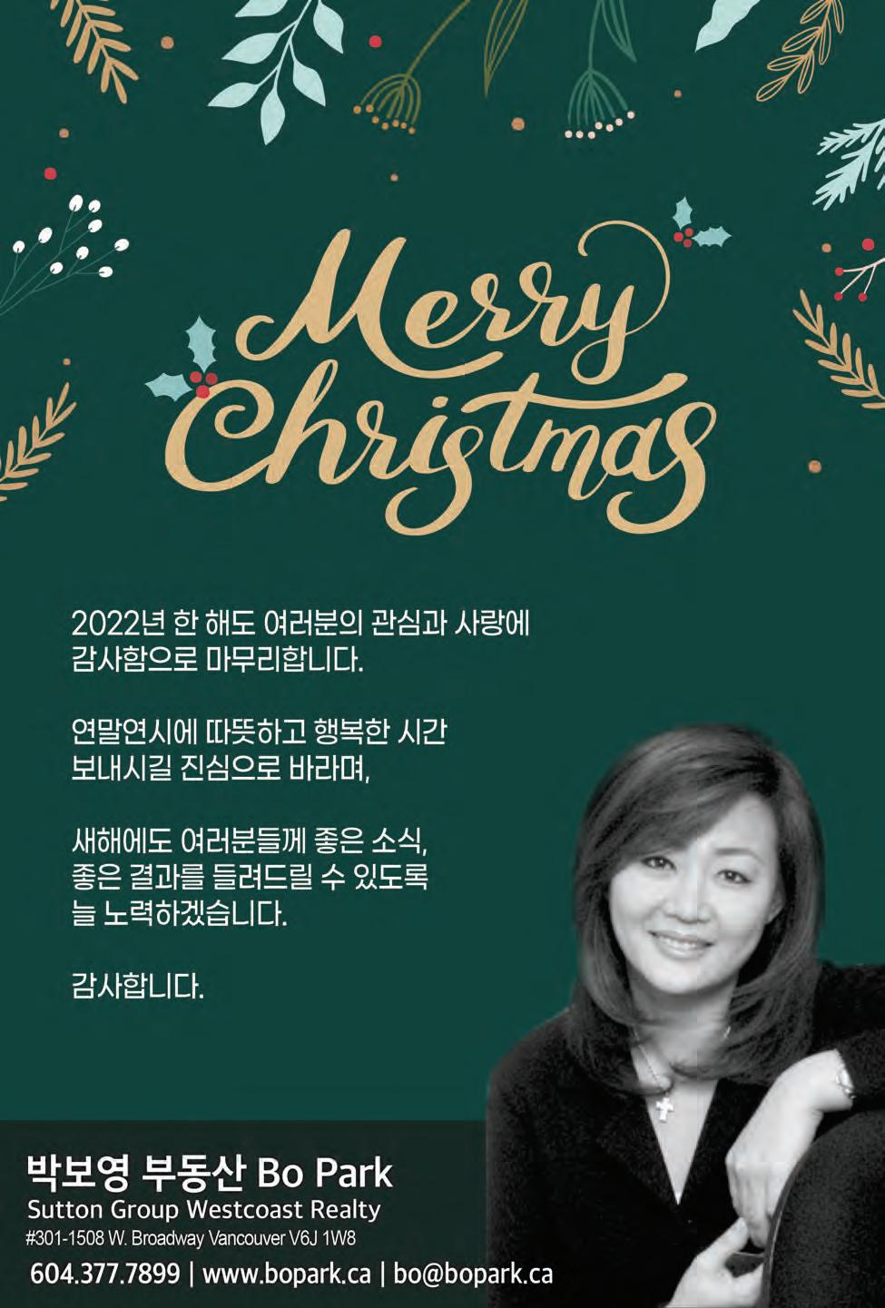 A1 조선일보 604·568·6633 308A 4501 North Rd Burnaby 지 건 주 공인회계법인 회계/세무/감사/사업계획 및 상담 Tel: (604)936-5222 / tjoffice@tjoocpa.com #320-4501 North Road, Burnaby, BC, V3N 4R7 주태근/앤디김 회계법인 고객을 성심껏 섬기는 Joo & Kim CPA Inc. Steve Chung T. 604.828.8949 (빨리빨(리) 팔구사구) 정성을 다하는 정성채 부동산 Royal Pacific Realty www.goodhouse.ca TEL: 604.433.0787 FAX: 604.433.0797 #203-4885 Kingsway, Burnaby, BC V5H 4T2 상법 및 부동산 법 / 각종 법인 관련 업무 ☎(604)877-1178 The Vancouver Korean Press Ltd. (Since 1986) 제4011호 2022년 12월 24일 토요일 vanChosun media vanchosun.com <밴쿠버 판> 加 경제 성장 속도 더뎌졌다 가을 이후 캐나다의 경제 성장 이 정체된 모습을 보이고 있다. 23일 통계청 발표에 따르면 지 난 10월 캐나다의 GD 는 전달 대 비 0.1%가 성장한 것으로 나타났 다. 이는 0%의 성장 을 기록할 것이라는 예상치를 상회하긴 했 지만 0.2%를 기록한 9월보다는 경제 성장 속도가 느려졌다. 지난 10월의 GD 성장은 서비 스 생산업( 0.3%)이 이 었다. 히 요식업 주 서비스 업계 의 GD 는 전달 대비 2.1% 성장 하면서, 박업(-1.6%)의 부진을 만회했다. 또한 예술·오락·레크리에이션 활동의 ( 2.2%)도 에 었 는데, 이는 캐나다 유일의 메이저 리그 팀 토론토 블루제이스의 플 레이오프 진출과 N L 경기 관중 28일 특별사면… 최경환·전병헌 남재준·이병기·이병호·김기춘도 한국 석열 대통 취임 후 두 번 별사면에 이명박 전 대통 과 최경환 전 경제부 리, 전 전 청와대 정무수석, 경 수 전 경남지사 등이 포함될 것으 로 23일 전해졌다. 무부는 이날 사면심사위원회 를 개최해 이들 여야 정치인이 상 당수 포함된 사면 대상자를 심사 했으며 한동 무장관은 그 결 과를 대통 에게 보고했다. 이 번 별사면에서 경제인들은 제 외됐다고 한다. 대통 은 27 일 국무회의 의결을 거쳐 28일 자 로 별사면을 단행할 것으로 전 해졌다. 사면·복권을 받게 될 여 권 인사에는 이 전 대통 외에 최 전 부 리, 남재준·이 기·이 가와 관련이 크다고 통계청은 설명했다. 항공 교통의 경우에도 전달 대 비 5.5%가 성장하면서 코로나19 데 이 시작된 이래 가장 높은 수준을 기록했지만, 지난 9개월 간의 지속적인 성장세에도 불구 하고 10월 항공 교통 활동은 데 이전에 비해서는 여전히 34% 낮은 수준이다. 반면에 10월 상 생산업(-0.7%)의 각은 광업· 채석업·석유·가스채 의 감소 와 제조업 부문의 부진이 이 었 으며, 구리, 니켈 , 아연 광석이 4.8% 감소하는 등 모 금속 광석 산업이 부진을 었다. 한편 통계청은 11월의 GD 성 장 은 10월 대비 큰 차이가 없을 것으로 내다봤지만, 이 예상치는 다음 달에 다시 바 수도 있다 고 다. TD 그 의 제임스 올란도( ran o) 수석 경제학자는 지난 10 월의 경제 성장 화는 금리 인 상으로 인한 영향과 여전히 높은 수준을 유지하고 있는 인플레이 션이 캐나다인들의 주 니 사정 을 점차 조이고 있다는 것을 시사 한다 며 내년 1월 말 중 은행의 차기 정 결정을 두고 여러 자 료가 나오겠지만, 약 25b 의 금 리 인상이 있을 가능성이 많다 고 분석했다. 또한, 로버트 카 ( avcic) B 수석 경제학자도 서비스업 의 선전으로 2022년 말까지 캐나 다 경제가 상대적으로 잘 버티고 있다 면서도 중 은행의 금리 인상 효과가 완전히 반영되기 시 작할 내년 상반기에 경제가 마 나 들리느 가 앞으로의 진 문제 라고 지적했다. 손상호 기자 ssh@vanchosun.com 역대 설과 함께 맞는 크리스마스 안전하고 화목 하게 ‘집 성 ’ 보내세요. GDP 성장 0.1% 그쳐… 서비스업 분전, 생산업 부진 인플레로 주머니 사정 악화… 금리 추가 인상 가능성 “고요한 밤, 거룩한 밤” 3년만에 크리스마스 합창 성탄절을 이틀 앞둔 23일 경기 용인시 새에덴교회 ‘천사의 소리 합창단’ 어린이들이 산타 모자를 쓰고 오는 성탄 예배 공연에서 부를 캐럴 ‘고요한 밤 거룩한 밤’을 연습하고 있다. 코로나 거리 두 기 이후에도 성탄 예배는 매년 열렸지만 합창단 어린이들이 함께 모여 노래를 부르는 것은 3년 만에 처음이다. 이날 연습 에 참석한 이수빈(11)양은 “다 함께 모여 크리스마스를 맞이할 수 있어서 행복하다”고 했다. 독자 여러분, 즐거운 성탄절 보내시기 바랍니다 Merry Christmas 폭설에 얼룩진 크리스마스… 캐나다 이틀째 ‘올스톱’ 크리스마스 시 을 앞두고 캐 나다를 타한 역대 설과 풍으로 대부분의 교통 수단이 마 비되는 초유의 사 가 벌어졌다. 한, 설, 풍이 전국 에서 발생해 비행편이 무더기로 취소되고 도와 도로 교통이 통 제되며 전력이 기는 등 에 서 피해가 속출했다. 저 밴쿠버, 토론토, 트리올 을 포함한 주요 공항에서 대다수 항공편이 결항됐다.