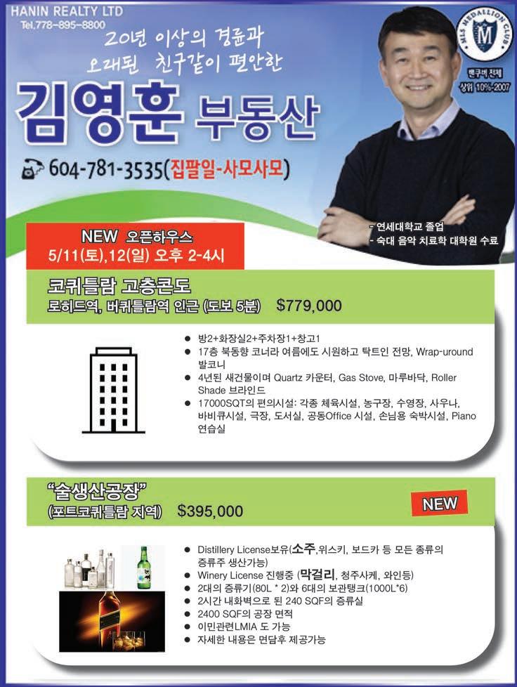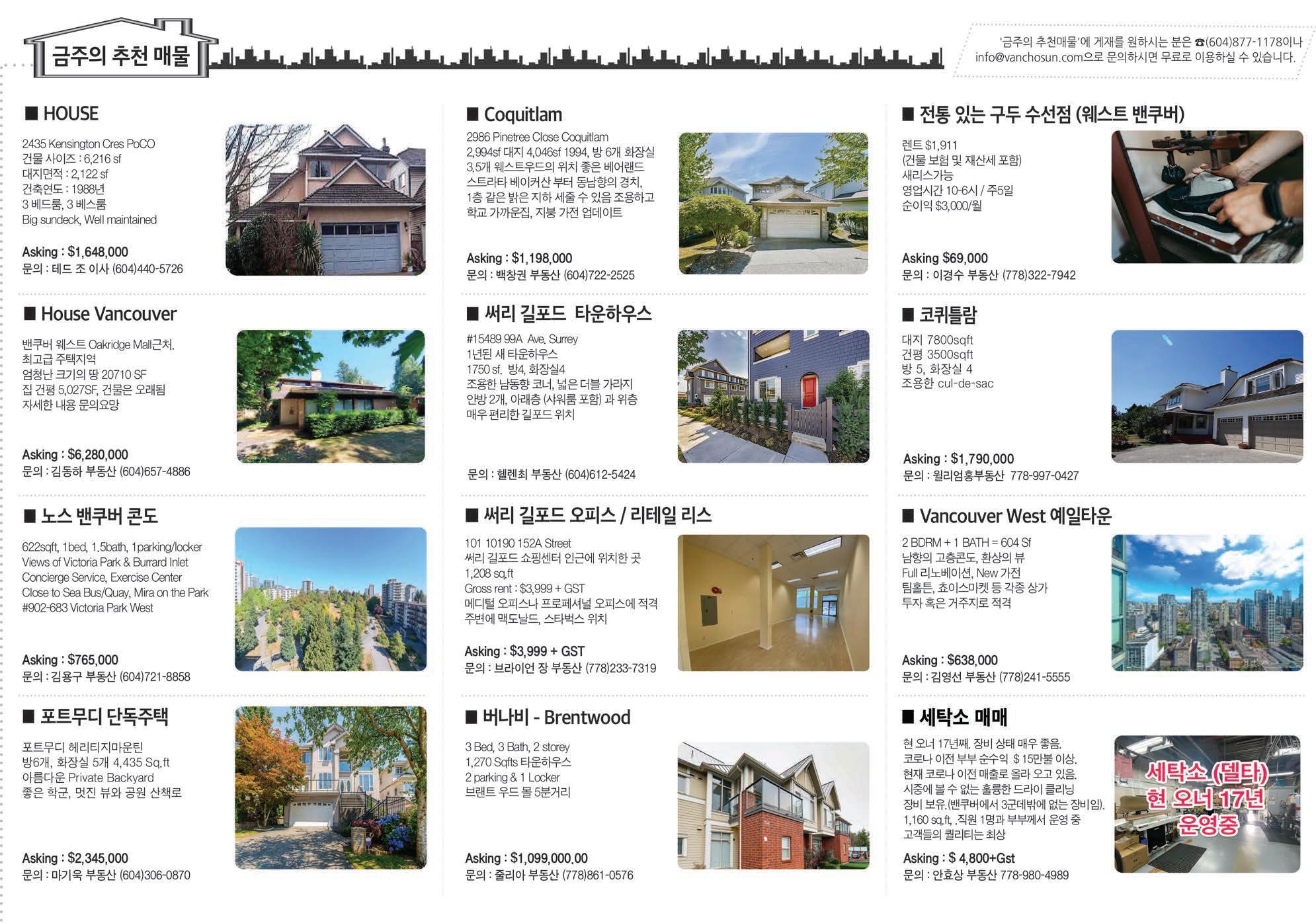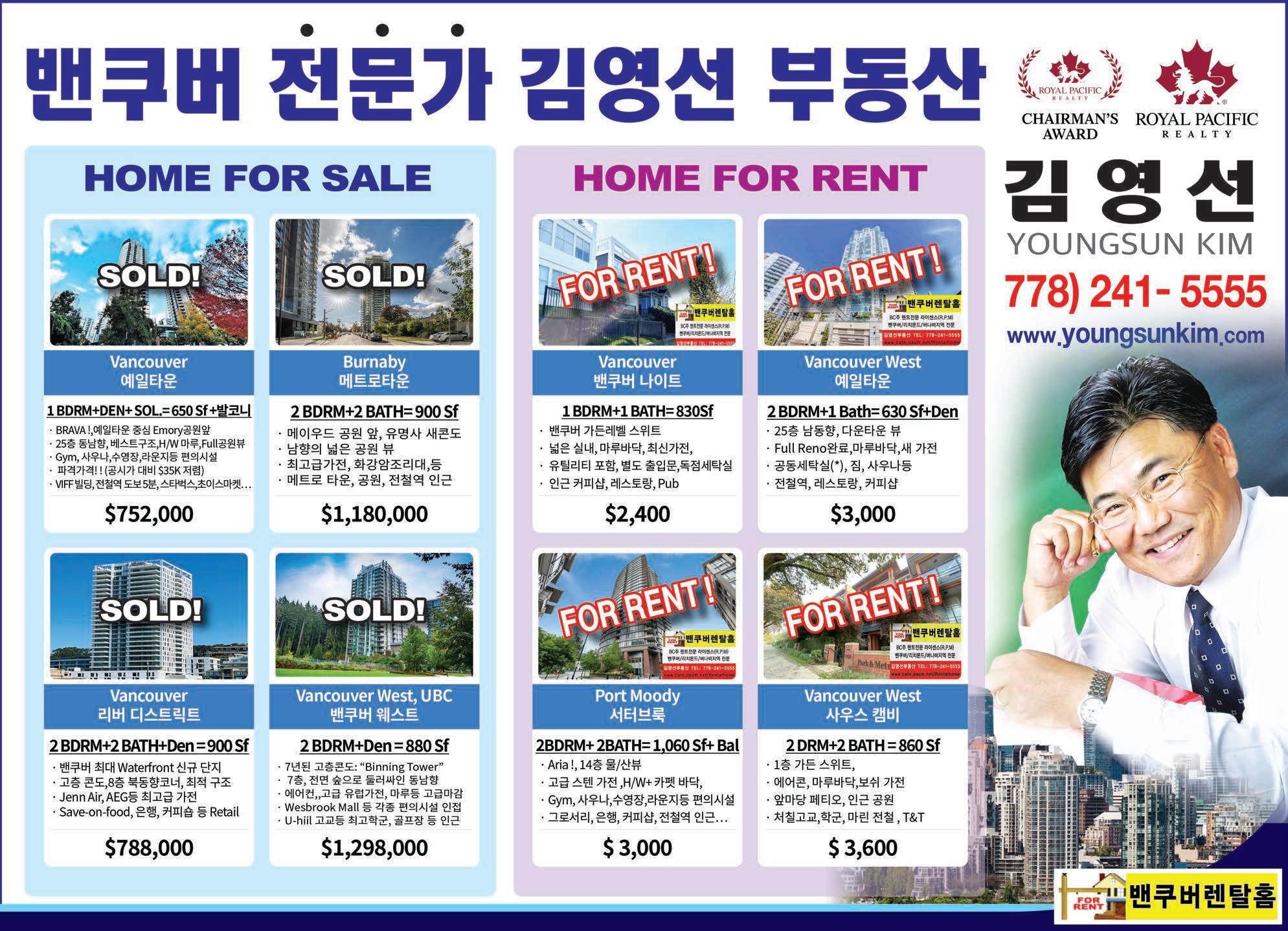 고 있고, 실제 거래된 매물의 평균 리 스팅가격과 평균 거래가격의 차이가 계속해서 줄어들고 있는 것도 시장 의 안정세를 유지하는 큰 역할을 하 고 있습니다. 올해 초만 하더라도 판매된 주택의 평균 리스팅가격 대비 실제 거래가격 의 평균이 3% 정도 낮았는데 4월 들 어서는 이제 이 가격 차이가 1%까지 좁혀졌습니다. 거래가격의 변동이 크 지 않은데, 이러한 상황이 발생하게 된 것은 시세보다 낮은 가격으로 리 스팅을 하여 바이어들의 관심을 모 아 멀티오퍼를 유도하면서 리스팅가 격보다 높은 매매가격으로 거래를 마 감하는 거래 수가 많아지고 있기 때 문입니다. 좋아보이는 매물이 시세보다 싼 가격에 리스팅되면 바이어들의 거 래도 이에 집중하게 되는 것입니다. 최근 들어 이런 방식의 매매가 전체 의 25% 이상을 차지하고 있습니다. 예전의 과열된 시장 상황에서나 볼 수 있었던 현상이었는데 이러한 매 매 전략이 현재의 balanced market 을 이끌어 가는 큰 역할을 하고 있습 니다. 그리고 이러한 거래가 현재 시 장의 안정적인 추세를 유지하는 데에 도 크게 기여하는 것으로 보입니다. 5 월 역시 큰 변동 없이 안정적인 시장 추세는 지속할 것으로 전망되고 있습 니다. 시장 상황을 잘 이해하여 현명 한 매매전략을 바탕으로 매수자나 매 도자가 모두 만족하는 안정적이고 정 상적인 시장이 지속되기를 바랍니다. 상담문의 : 마기욱 리얼터 (604)306-0870
