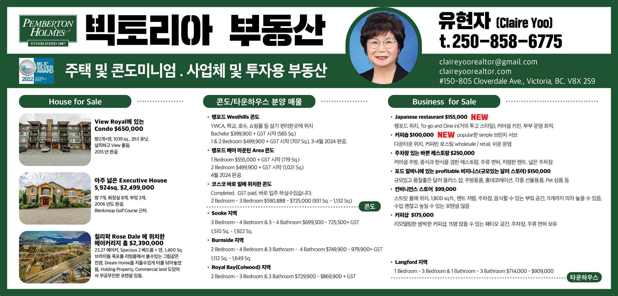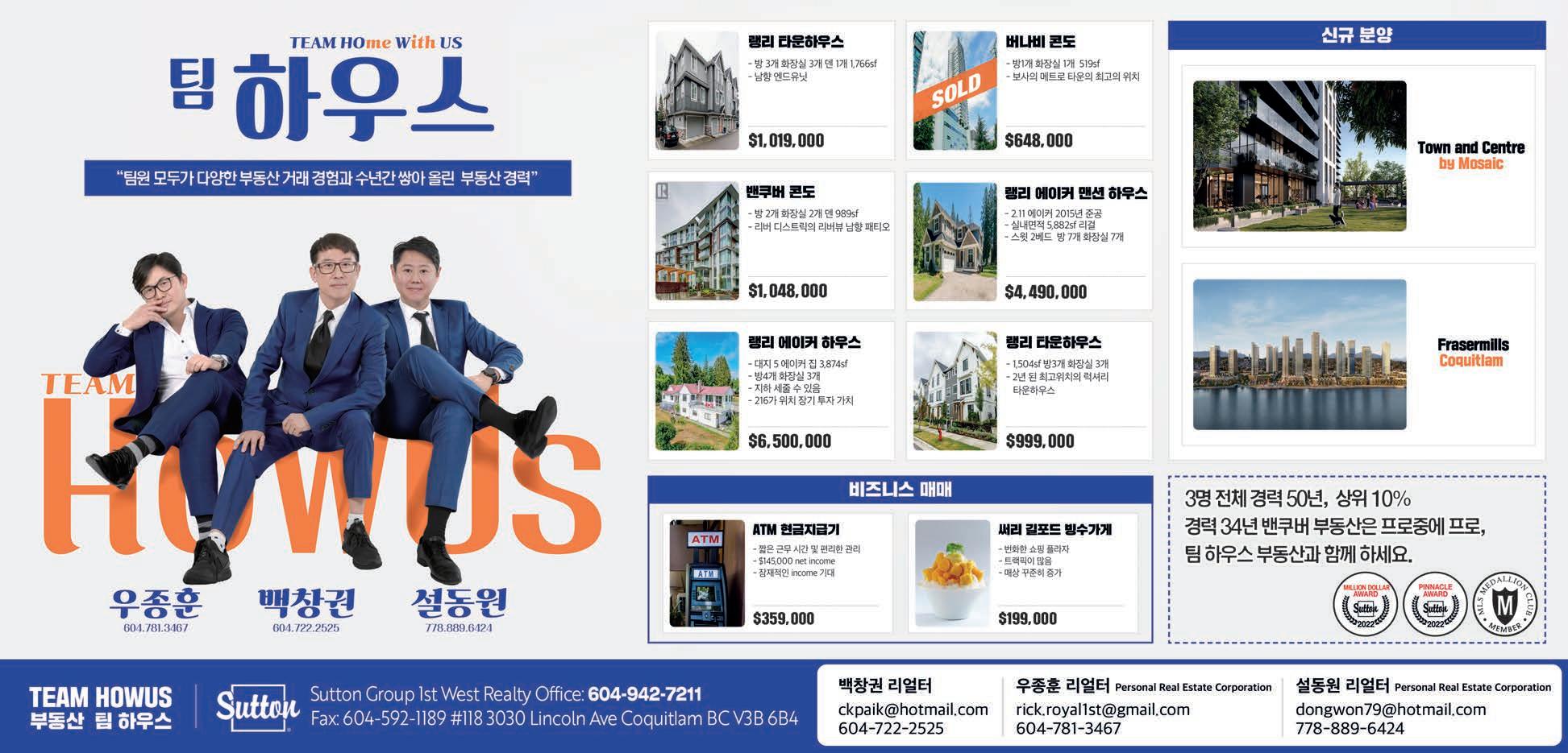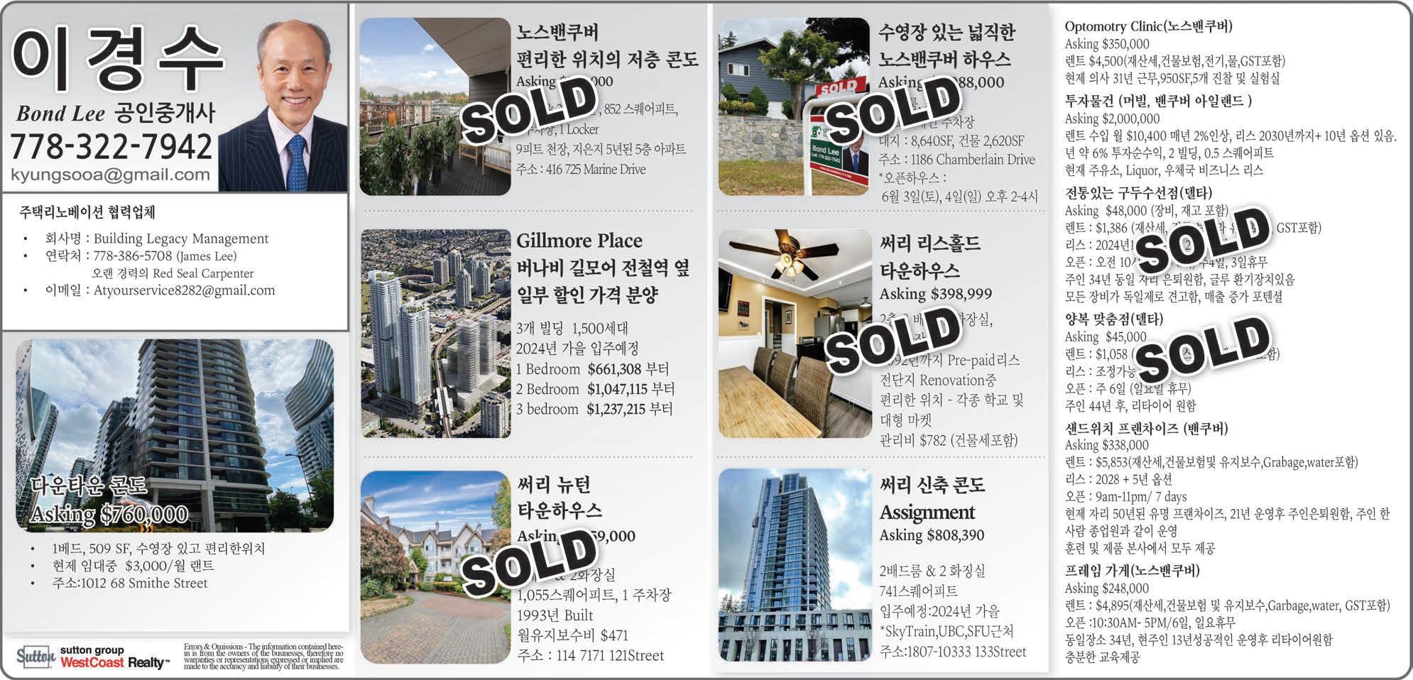 고 있고, 실제 거래된 매물의 평균 리 스팅가격과 평균 거래가격의 차이가 계속해서 줄어들고 있는 것도 시장 의 안정세를 유지하는 큰 역할을 하 고 있습니다. 올해 초만 하더라도 판매된 주택의 평균 리스팅가격 대비 실제 거래가격 의 평균이 3% 정도 낮았는데 4월 들 어서는 이제 이 가격 차이가 1%까지 좁혀졌습니다. 거래가격의 변동이 크 지 않은데, 이러한 상황이 발생하게 된 것은 시세보다 낮은 가격으로 리 스팅을 하여 바이어들의 관심을 모 아 멀티오퍼를 유도하면서 리스팅가 격보다 높은 매매가격으로 거래를 마 감하는 거래 수가 많아지고 있기 때 문입니다. 좋아보이는 매물이 시세보다 싼 가격에 리스팅되면 바이어들의 거 래도 이에 집중하게 되는 것입니다. 최근 들어 이런 방식의 매매가 전체 의 25% 이상을 차지하고 있습니다. 예전의 과열된 시장 상황에서나 볼 수 있었던 현상이었는데 이러한 매 매 전략이 현재의 balanced market 을 이끌어 가는 큰 역할을 하고 있습 니다. 그리고 이러한 거래가 현재 시 장의 안정적인 추세를 유지하는 데에 도 크게 기여하는 것으로 보입니다. 5 월 역시 큰 변동 없이 안정적인 시장 추세는 지속할 것으로 전망되고 있습 니다. 시장 상황을 잘 이해하여 현명 한 매매전략을 바탕으로 매수자나 매 도자가 모두 만족하는 안정적이고 정 상적인 시장이 지속되기를 바랍니다. 상담문의 : 마기욱 리얼터 (604)306-0870