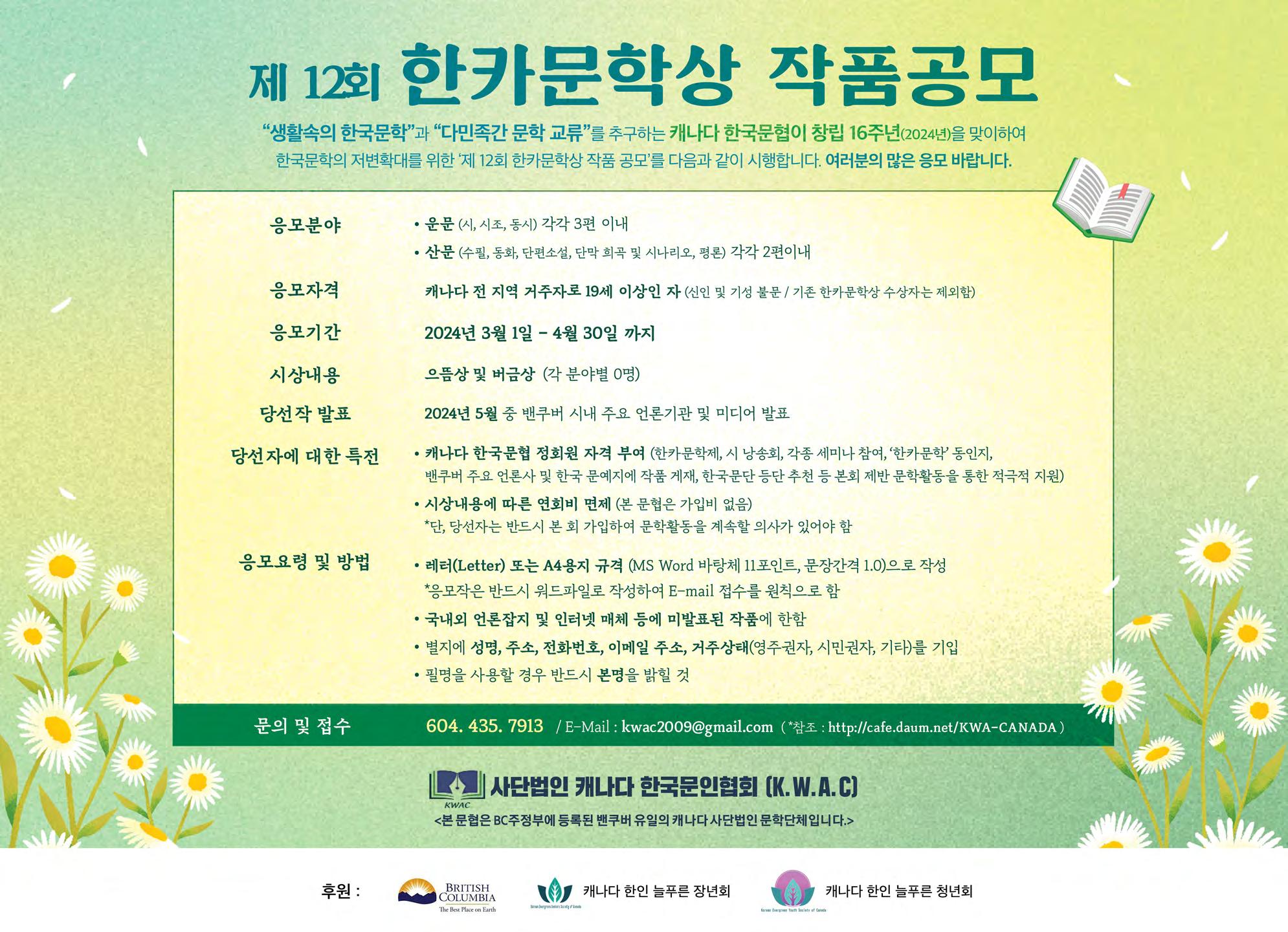 2024년 밴쿠버문학 신춘문예 공모전