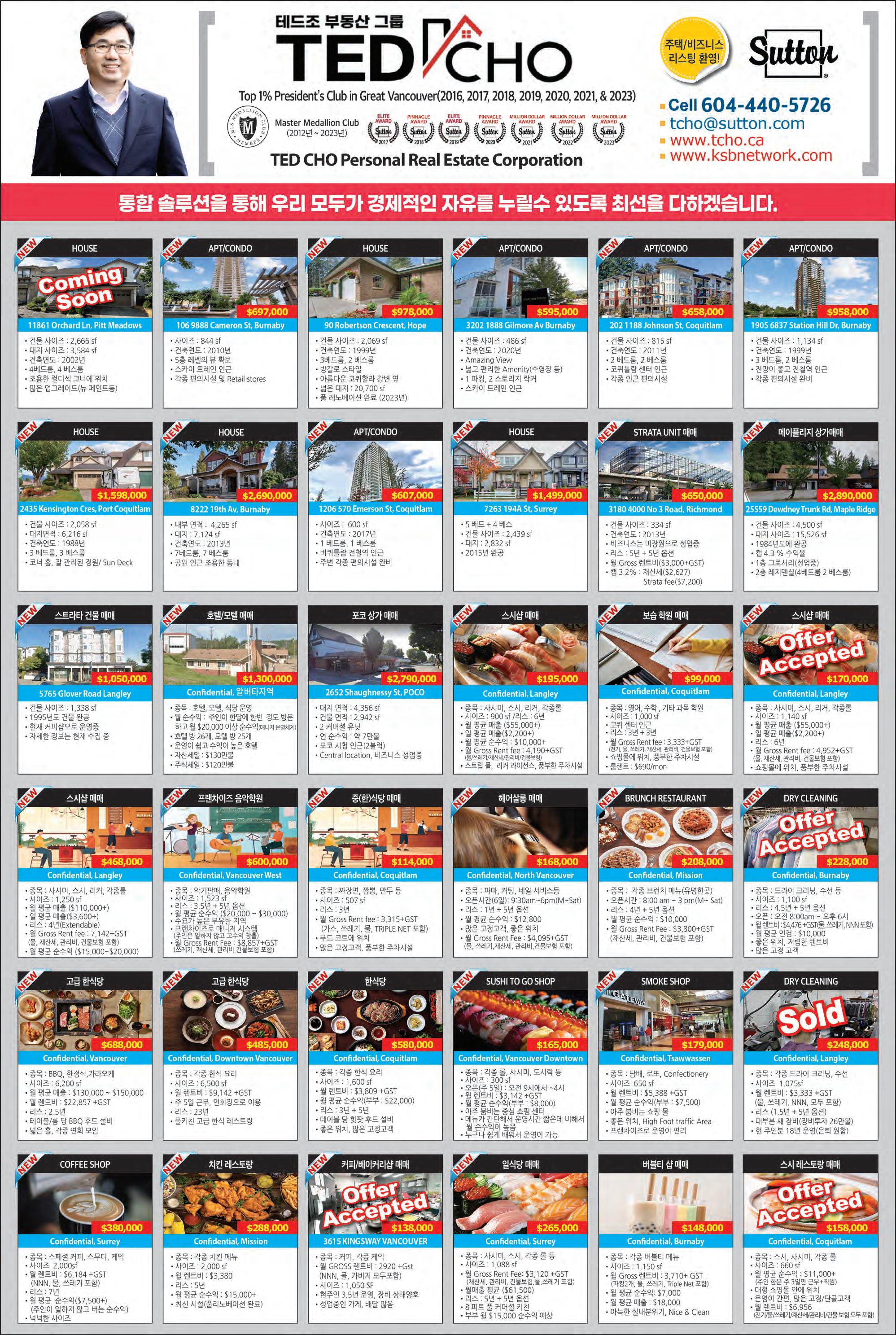 비즈니스로 부터 주택 & 상가구매까지 778-855-0240 ericleeprec@gmail.com