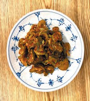 윤혜자₩편성준부부의밥상. 오른쪽사진은오이지무침인데과거에는청양고추, 다진파, 마늘, 고 춧가루에참기름을넣었지만요즘엔들기름만넣고간단하게무쳐먹는다.