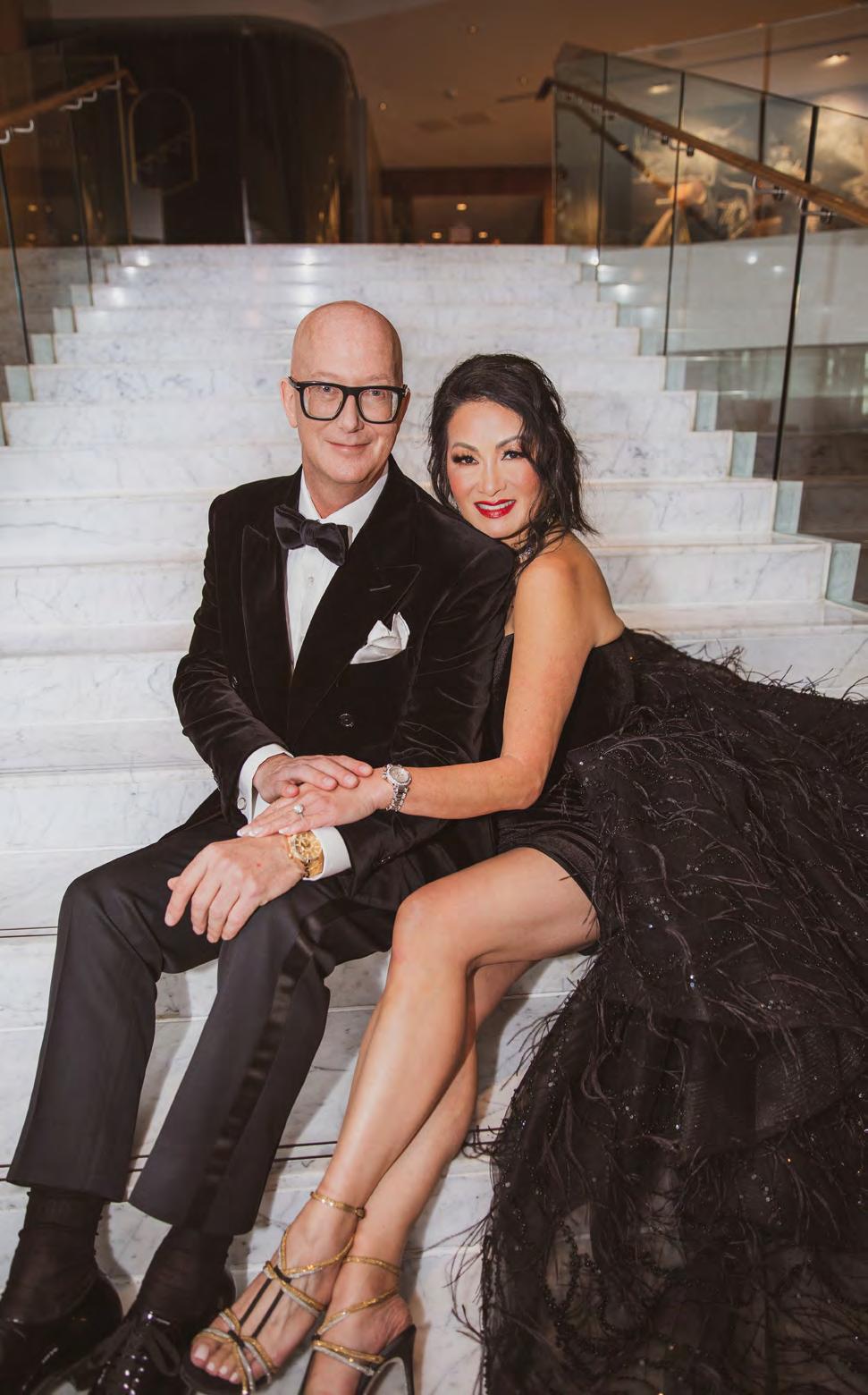 The marriage ceremony, performed by a Buddhist bishop, was the crowning moment of the event. Linda was exquisite in a strapless white wedding dress, and Jim was handsome as ever in his Tom Ford tuxedo. Guests sat down for a sumptuous four-course dinner, and the champagne bubbled and flowed endlessly. Toasts were kept to a minimum.